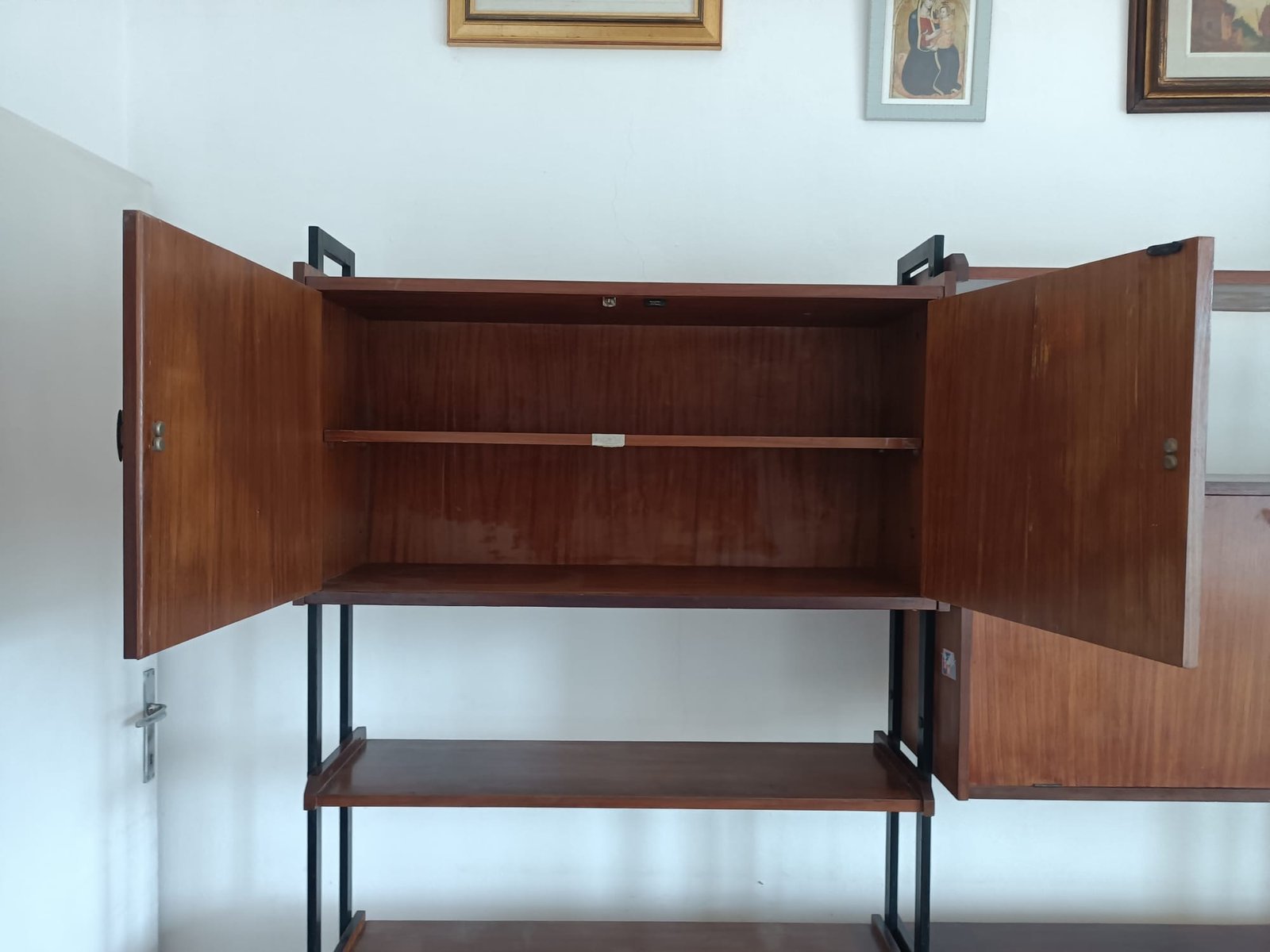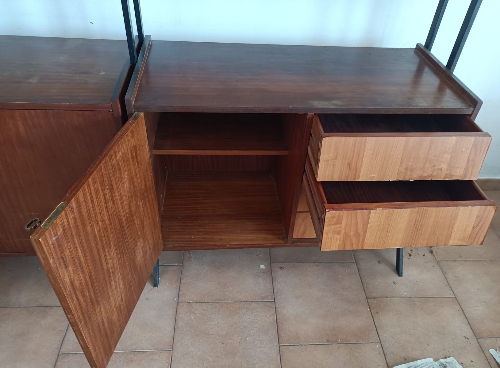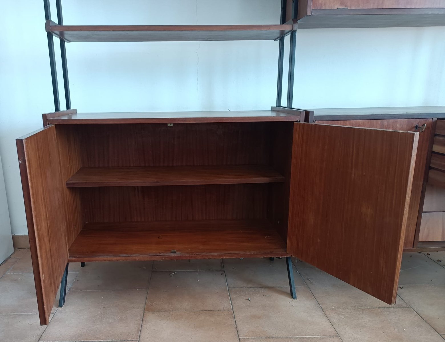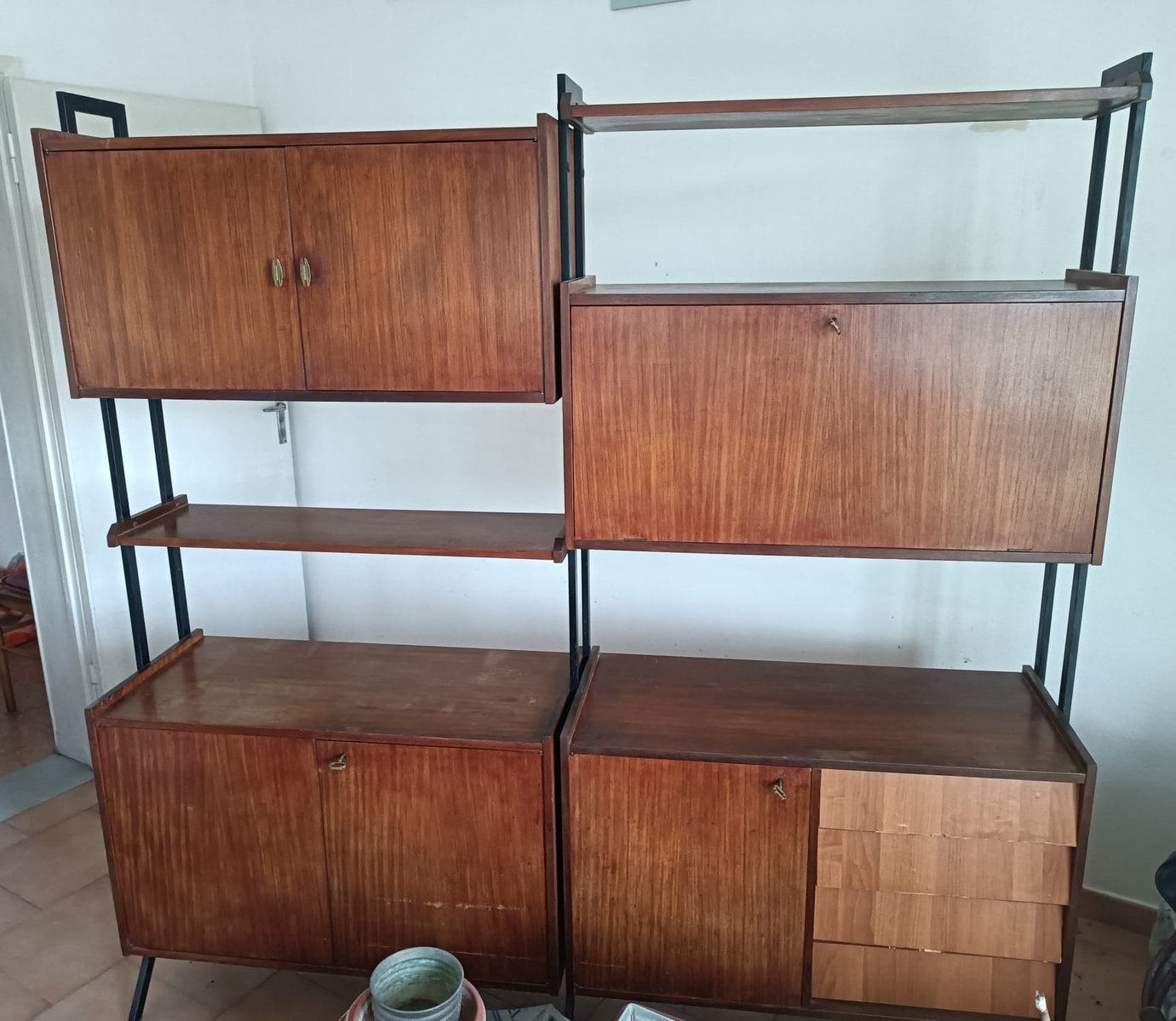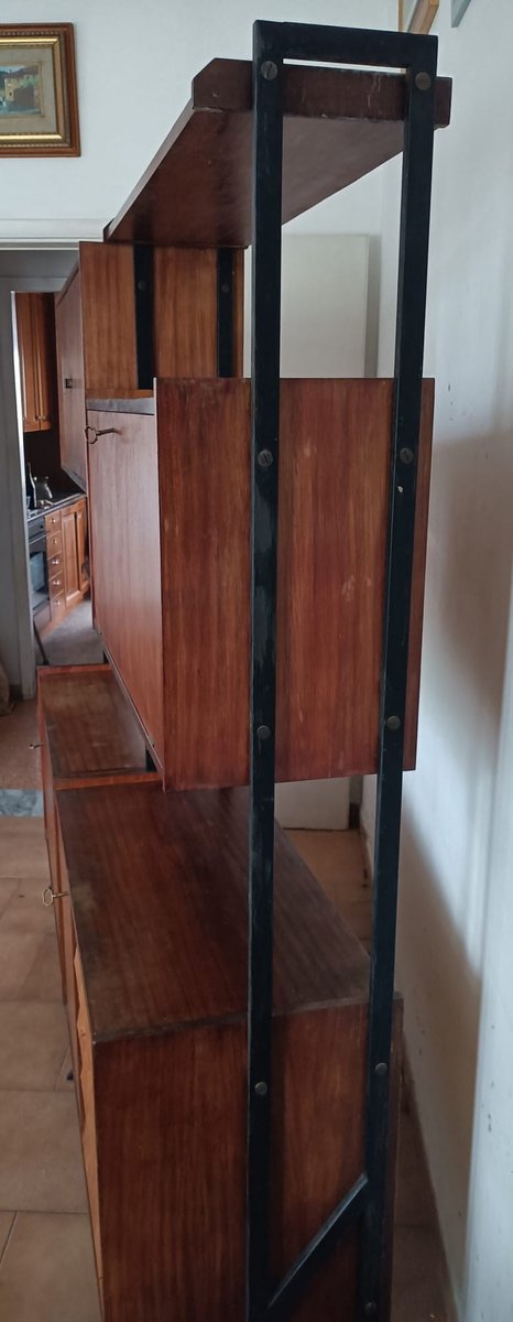 Freistehendes schwedisches Bücherregal aus Teak & Metall, 1960er