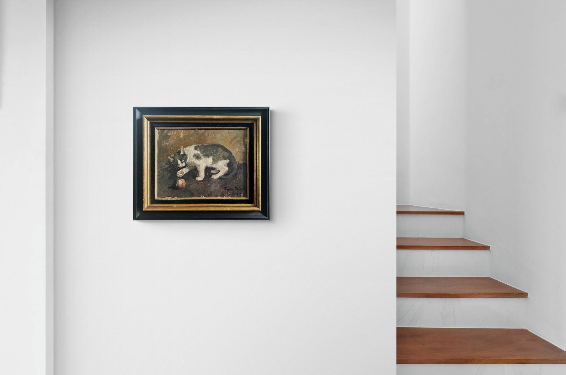 Frode Kierulf, Dänischer Impressionismus, Spielende Katze, 1916, Öl auf Leinwand, Gerahmt