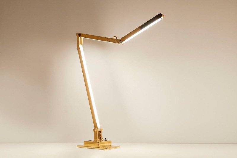 Geometric Héron Table Lamp by Jennifer Midoz Dimensions: D 12 x W 24 x H variable cm Materials: Polished brass, pale gold and white nickel finish. All our lamps can be wired according to each country. If sold to the USA it will be wired for the USA for instance. with elegance and balance, Héron provides optimum office lighting, with the light distributed throughout the body of the lamp and changing according to the user's needs thanks to its articulated joints. Jennifer Midoz (formerly Mydriaz Paris) is a lighting and decorative furniture design studio founded in 2011. from its atelier under the Viaduc des Arts in Paris, Jennifer Midoz and her team develop large-scale projects, from the first sketch through to production and installation. All pieces are handcrafted and, in some cases, made to order, and can be found in renowned boutiques, hotels, and private residences.Light lies at the heart of every creation, explored through a range of materials: metal for its reflections and projections; glass and ceramics for the elegance of their movement and subtle play of color. Jennifer Midoz’s universe draws inspiration from nature, cinema, and painting—three worlds that continuously nourish the studio’s creative process. A graduate of École Boulle, Jennifer began her career in museography before founding her first brand as a jewelry designer. This early work shaped her affinity for pure, architectural forms and a deep sensitivity to texture and light—elements that naturally led her to the creation of the studio, where lighting now plays a central role.