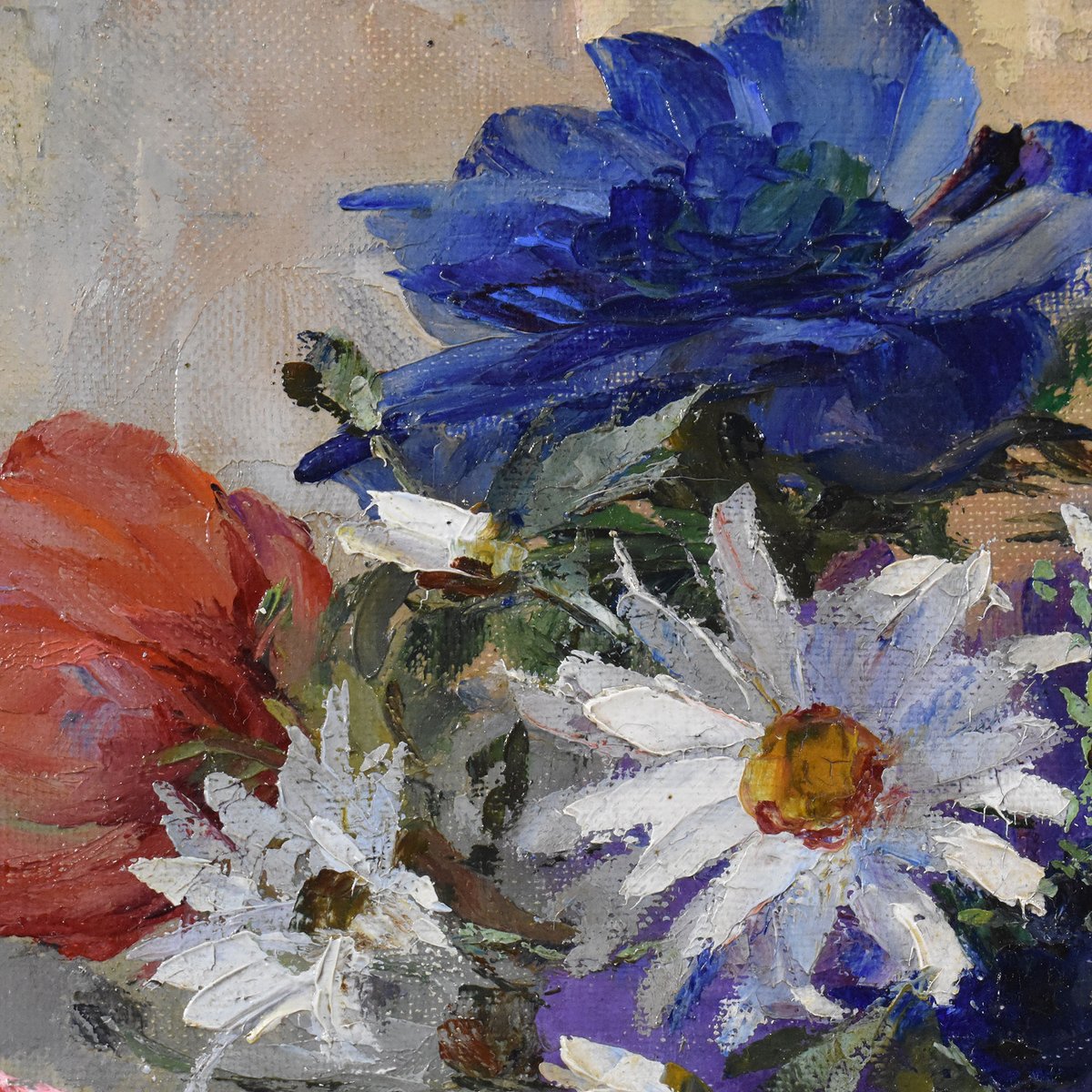 Blumen-Kunstwerk, antikes Ölgemälde, Blumenvasen-Gemälde, das einen Blumenstrauß aus Anemonen und Gänseblümchen darstellt