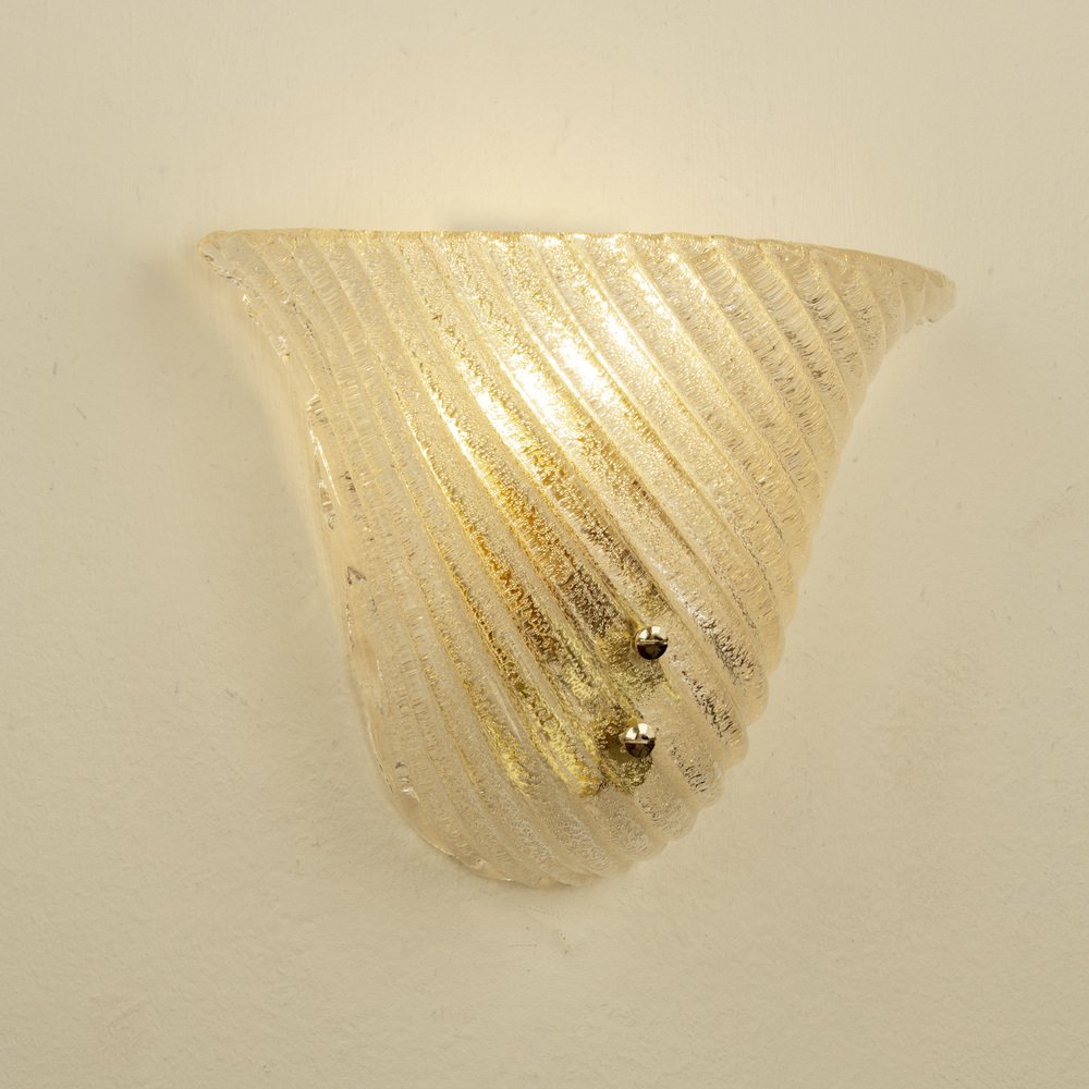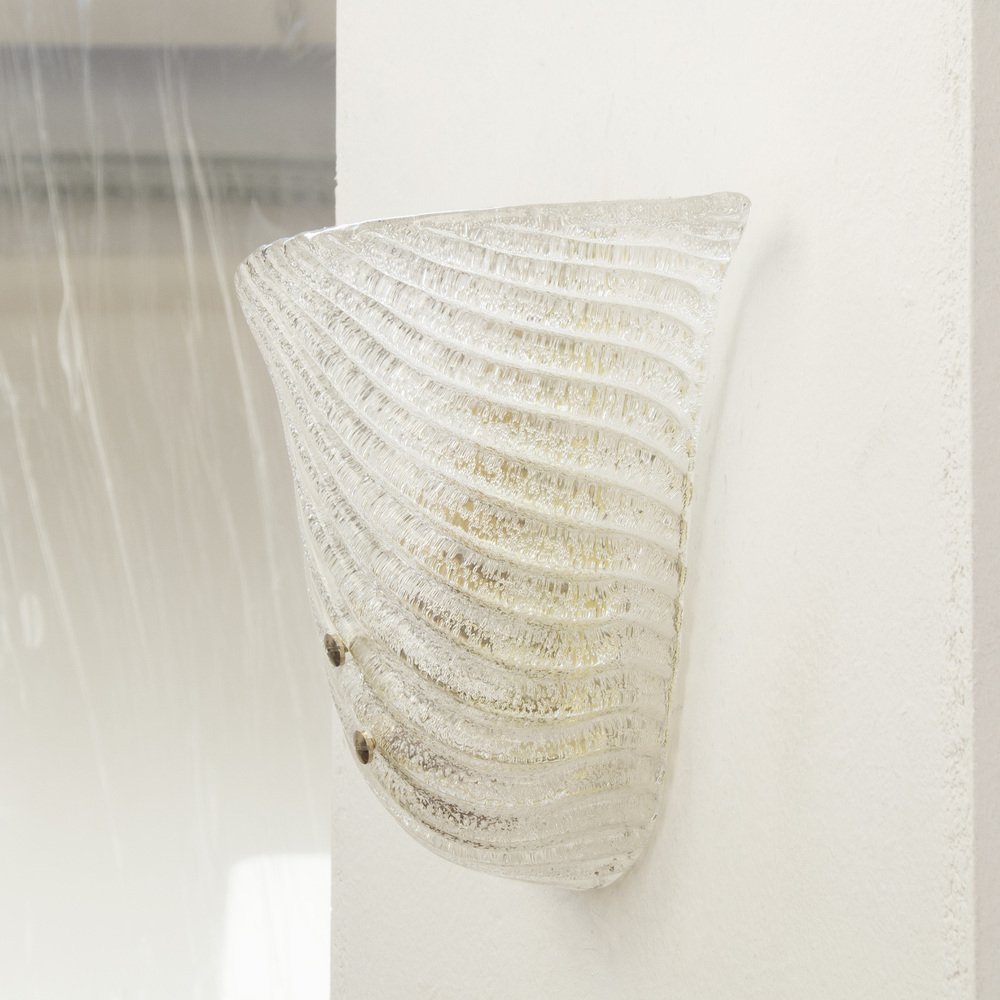 Gerippte Wandlampen aus klarem Glas, 1960er, 2er Set