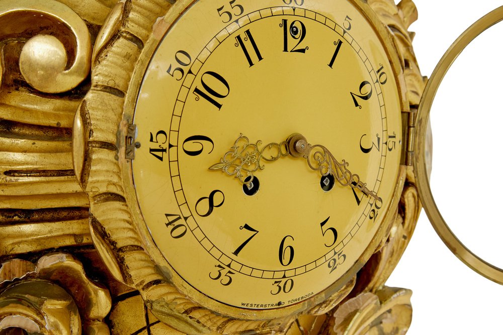 Geschnitzte Mid-Century Modern Rokoko Revival Uhr von Westerstrand, 1950er
