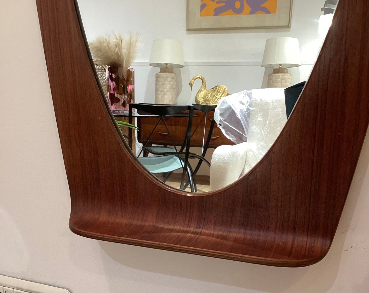 Geschwungener Holzspiegel von Campo E Graffi für Home, 1960er