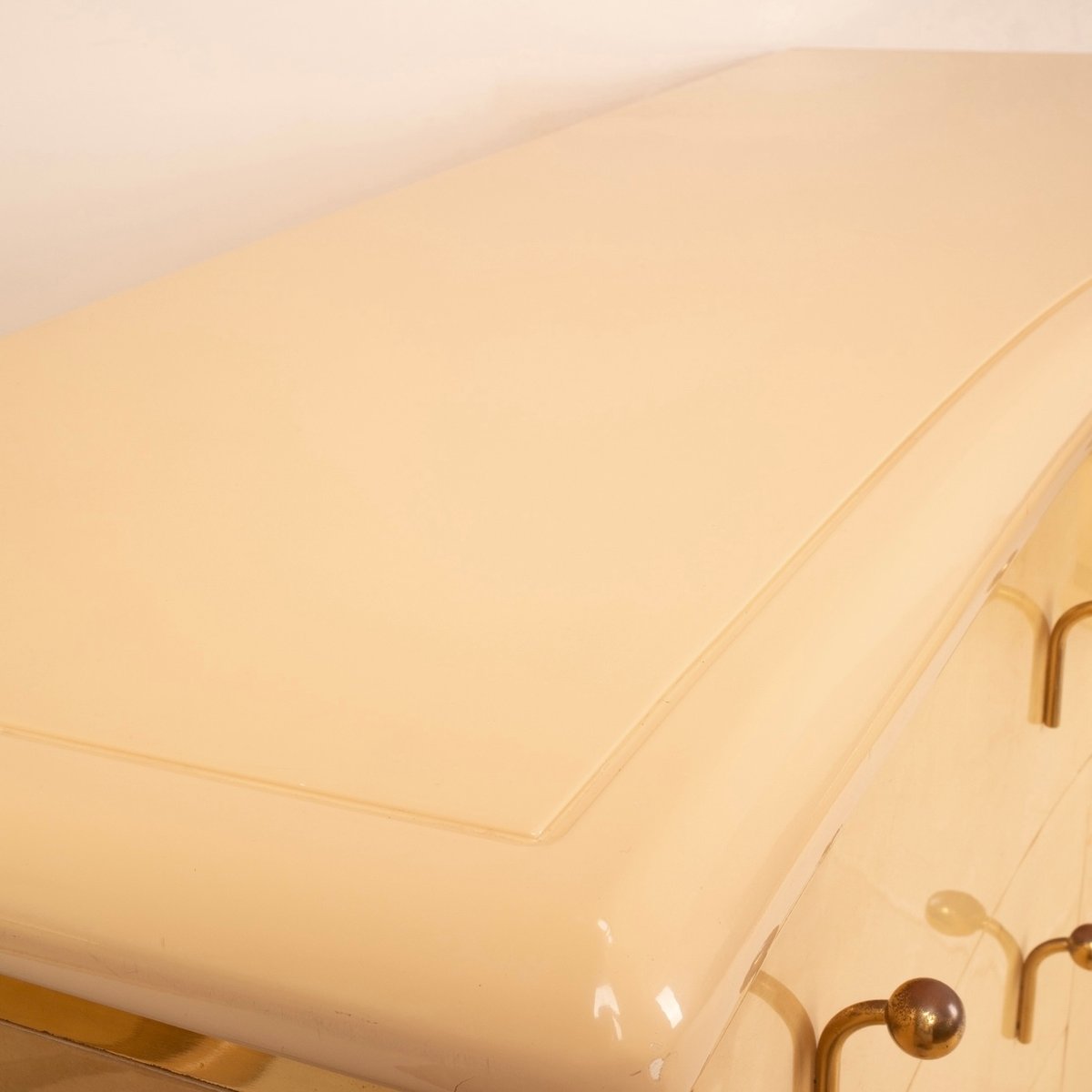 The cabinet, with its impeccable ivory lacquered top and base, is in perfect condition despite its nearly 60 years of age.