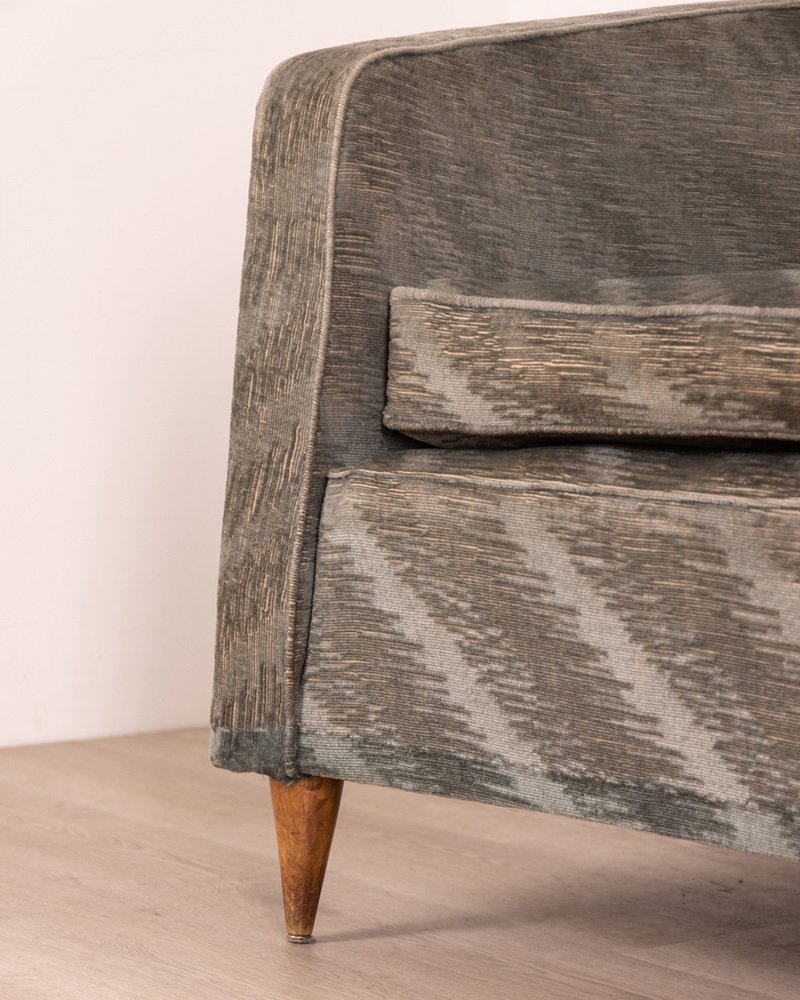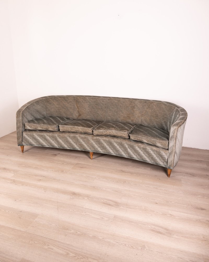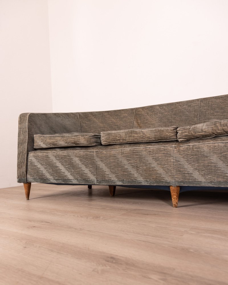 Geschwungenes italienisches Sofa aus blauem Samt, 1950er