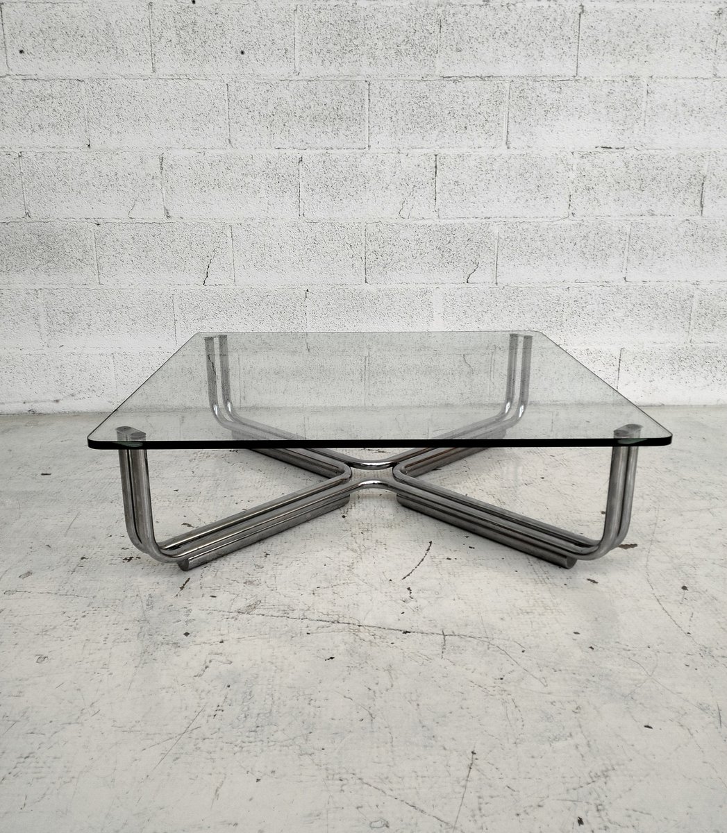 Runder Nodo Tisch aus verchromtem Stahl & Glas von Carlo Bartoli für Tisettanta, 1970er