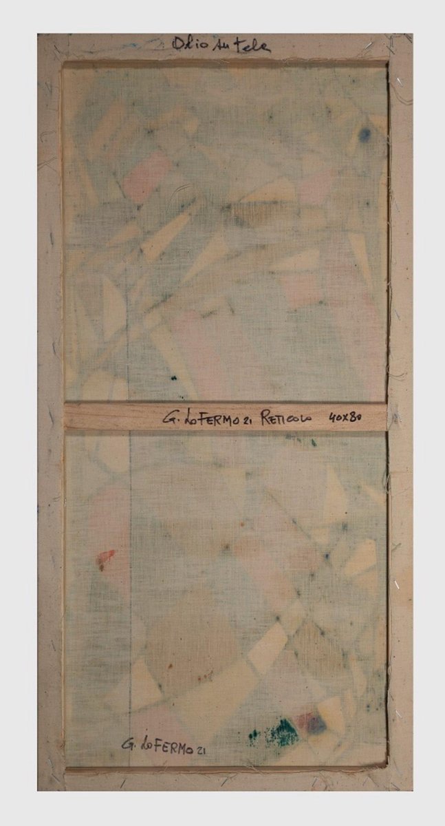 Reticolo I is an original artwork realized by Giorgio Lo Fermo (b. 1947) in 2021. Original Oil Painting on Canvas. Hand-signed and dated by the artist on the back: G. Lo Fermo 21. Perfect conditions. Giorgio Lo Fermo is an Italian painter and sculptor. He was born in Sicily in 1947, but has lived and worked in Rome since the mid-1960s. He studied at the School of Arts and Crafts of San Giacomo and then Sociology of Art at the University of Rome. His innovative style took form in the 70s, in the stimulating atmosphere of the new Rome, re-born through the creative vitality of Fellini and Rossellini. Lo Fermo’s style is a studied symbolic elaboration of varying rhythms, in which objectivity and logic give way to a liberal expression of the dynamic content. His concept is reanimated in color and in aesthetics, which take kinetic paths toward both reality and fantasy, connecting themselves intimately with experience and interior tension. During his career, Giorgio Lo Fermo has participated in international exhibitions in New York (1992), Stockholm (1992), Budapest (1992/1993), Hong Kong (1994) and in the International Art Competition of New York in 1995. He won several important recognitions and awards: the Italian Art Leader Award ’92, the Art and World Prize of Hong Kong in 1994; he was also nominated member of the Accademia Internazionale Greci/Marino. The major galleries in Rome, such as A. Consorti, Gradiva, Babuino and Yanika, exhibit his canvases, and his work is held in private collections both in Europe and in America.