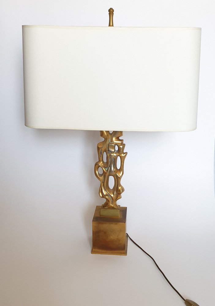 Goldene Tischlampe aus Bronze von Papineau, 1970er