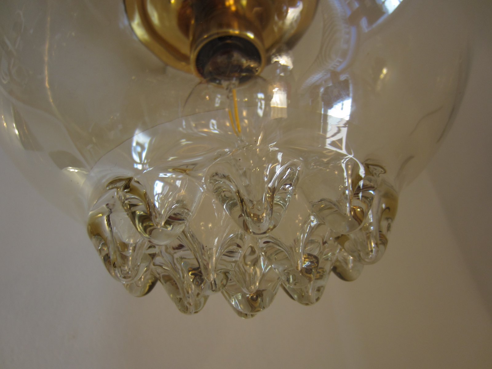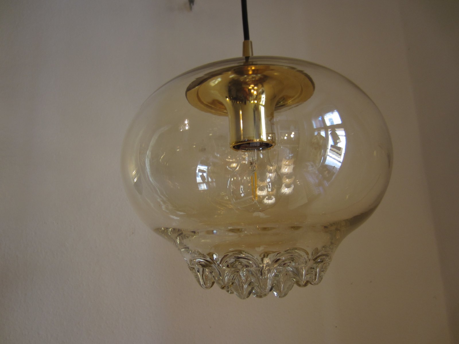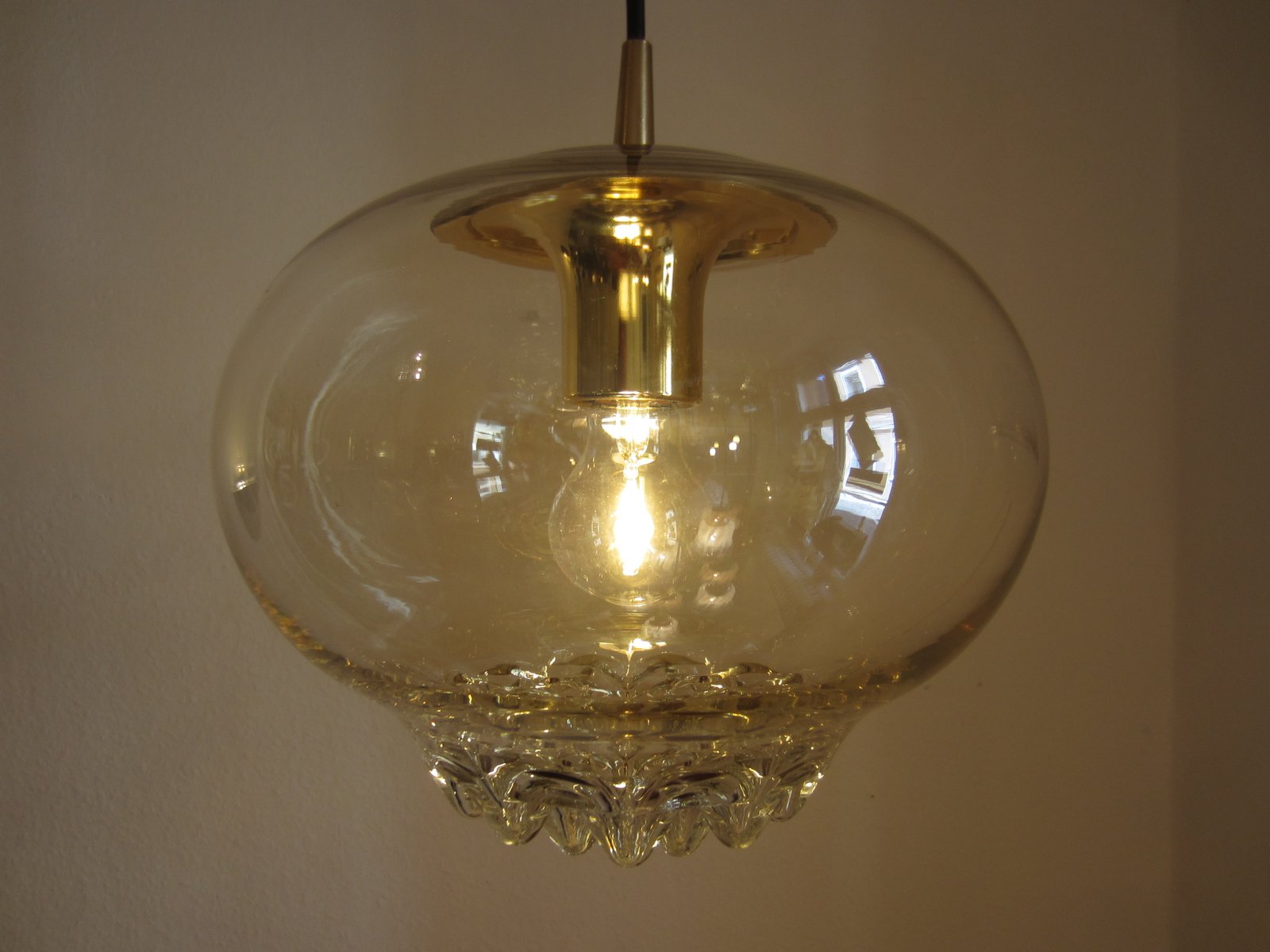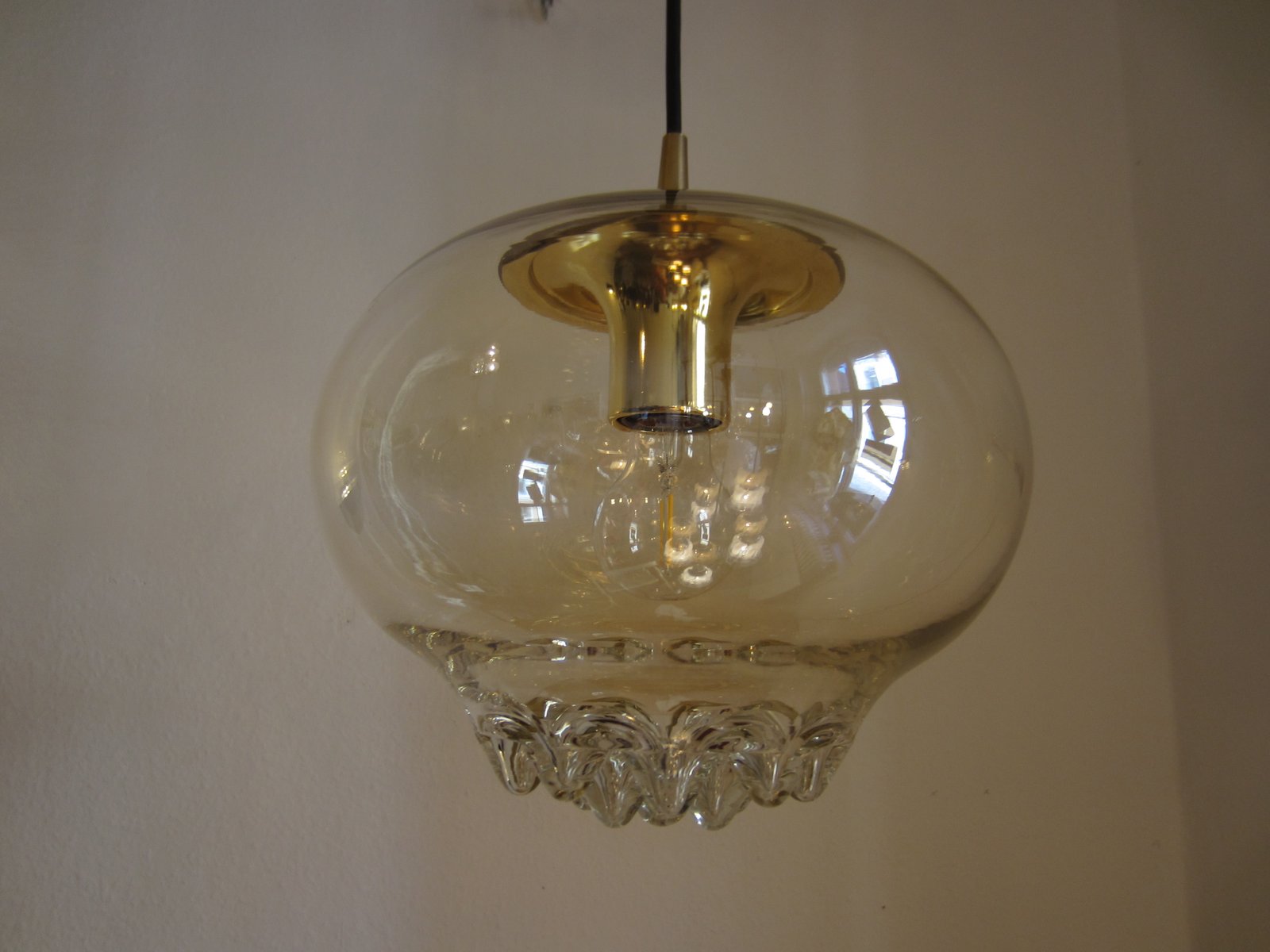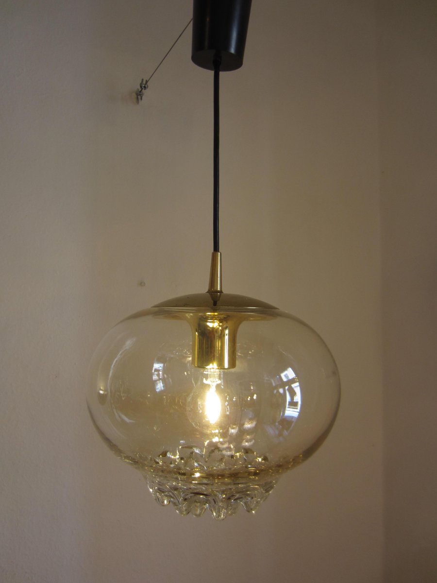 Goldglänzende Hängelampe aus Glas von Peill & Putzler, 1970er