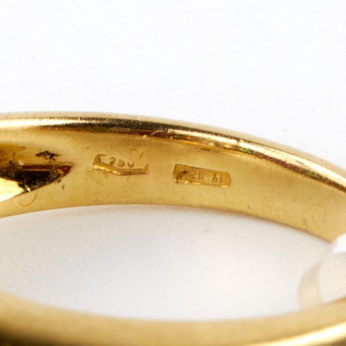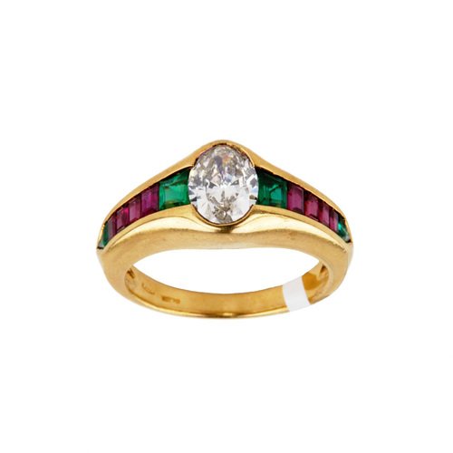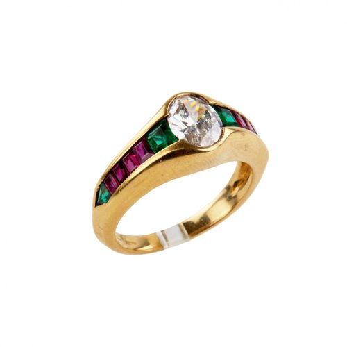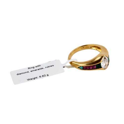 Goldring, 18 Karat mit Diamant, Smaragden und Rubinen, 2000er