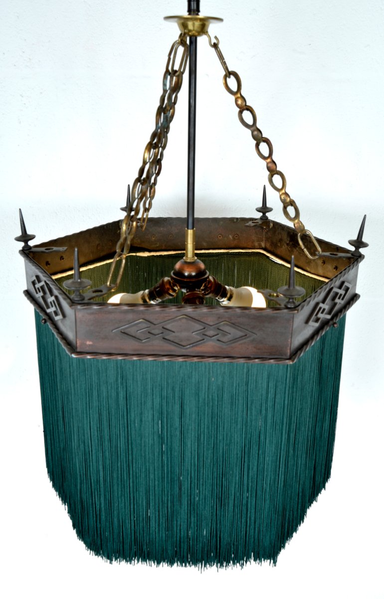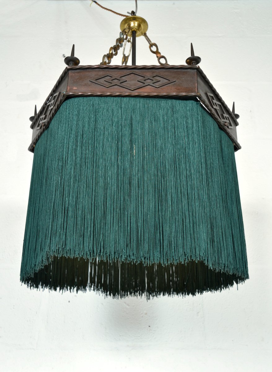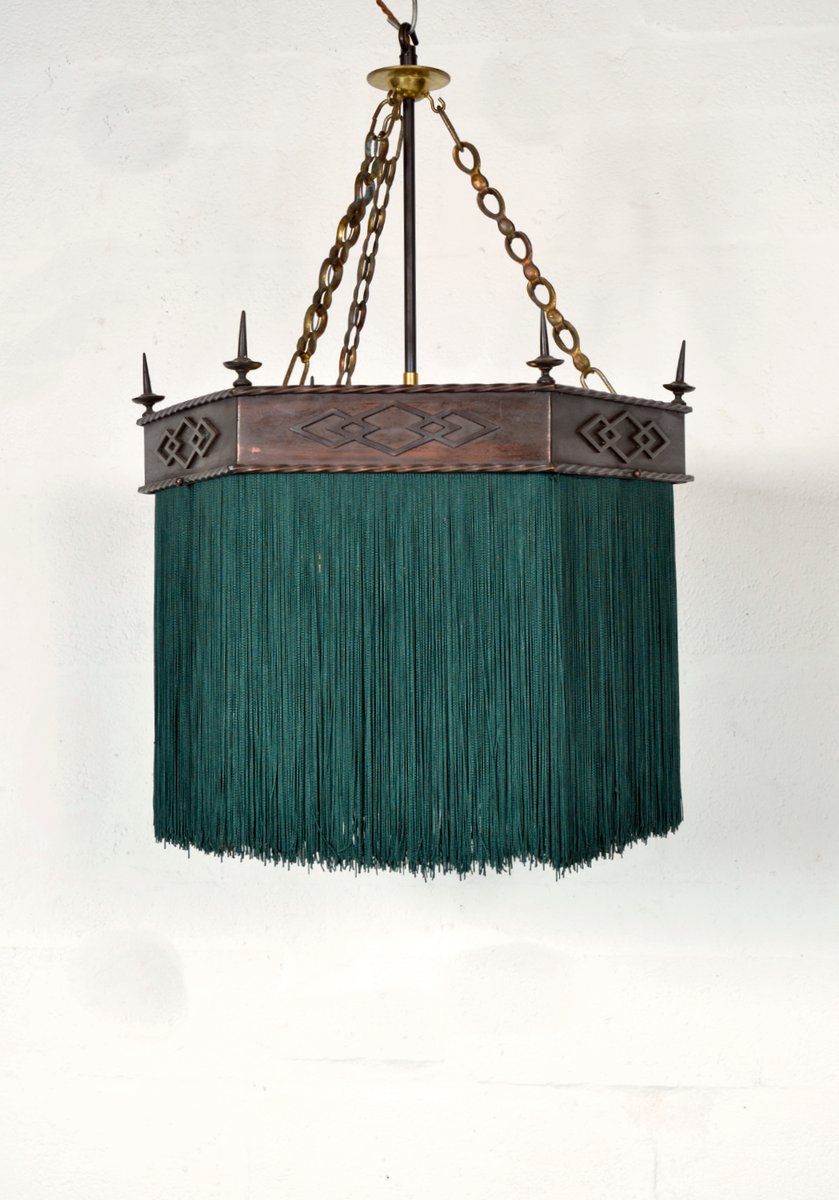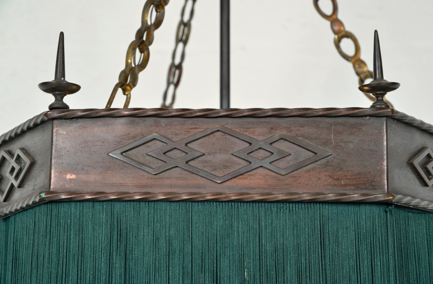 Gotische sechseckige Kronleuchter aus Kupfer mit Fransen und Fransen im Edwardianischen Stil, 1900er