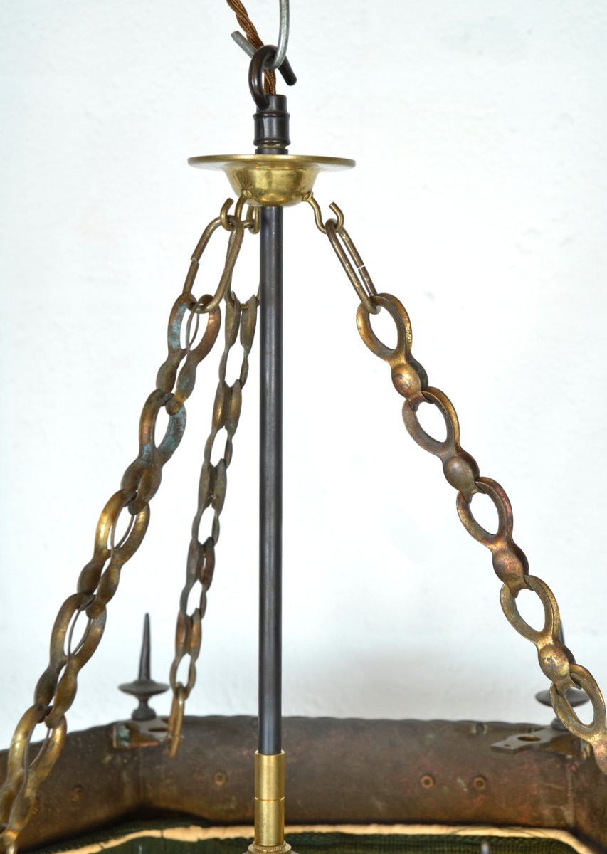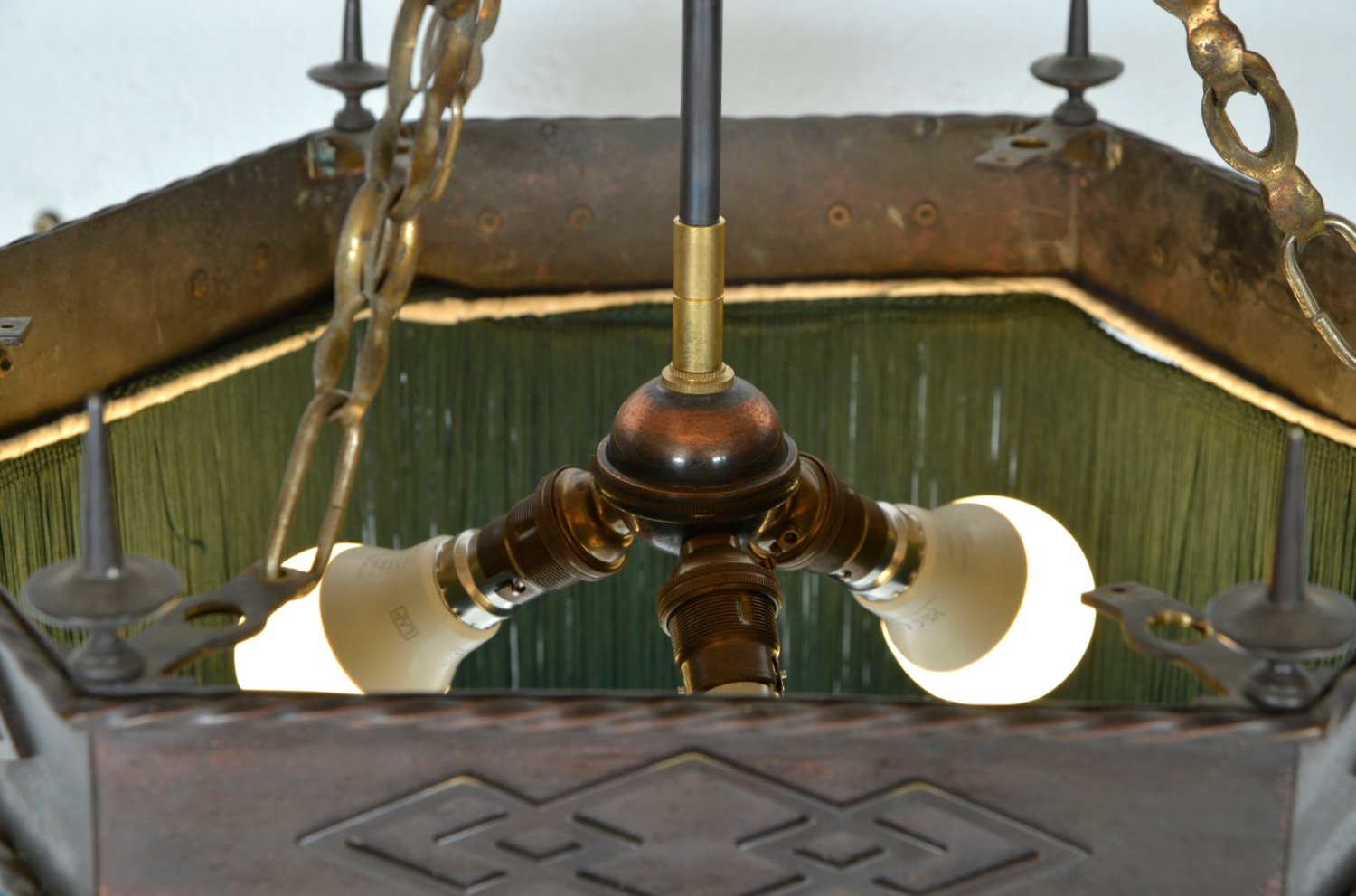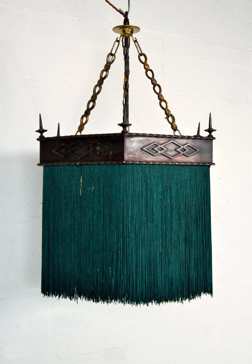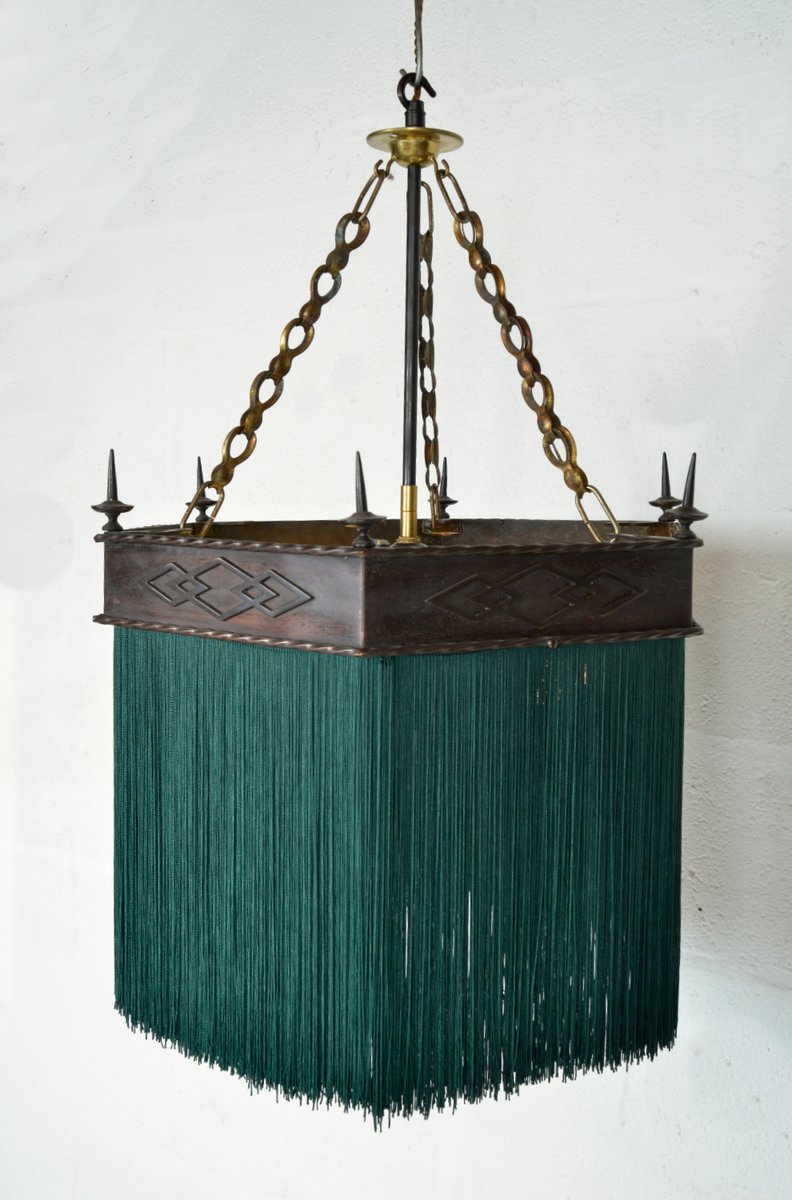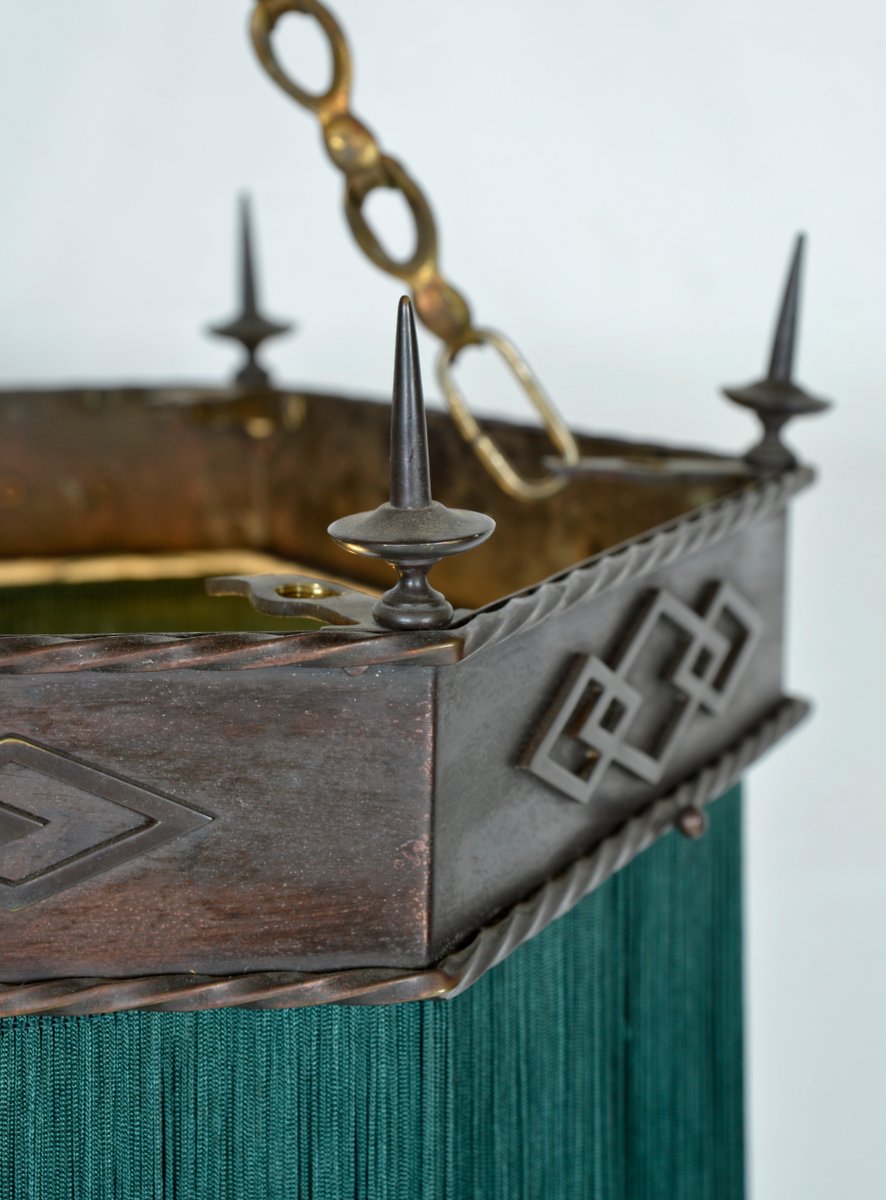Gotische sechseckige Kronleuchter aus Kupfer mit Fransen und Fransen im Edwardianischen Stil, 1900er