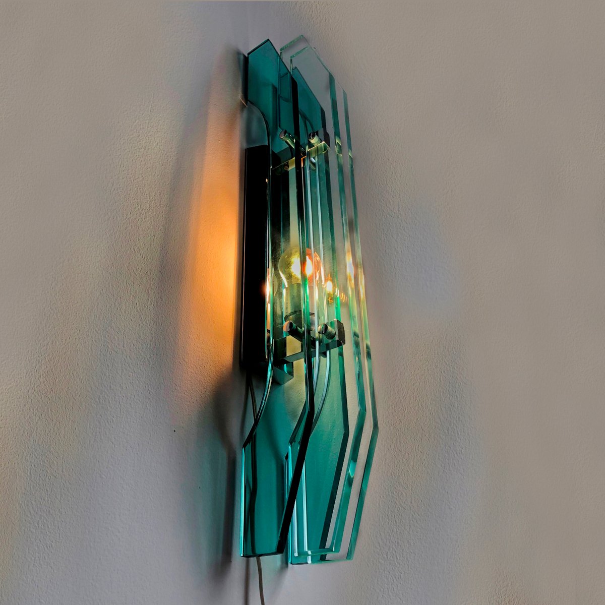 Große Italienische Wandlampe in Smaragdgrün von Cristal Art, 1970er