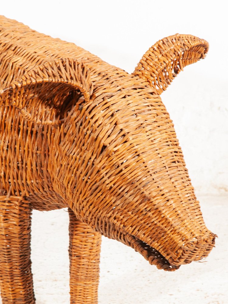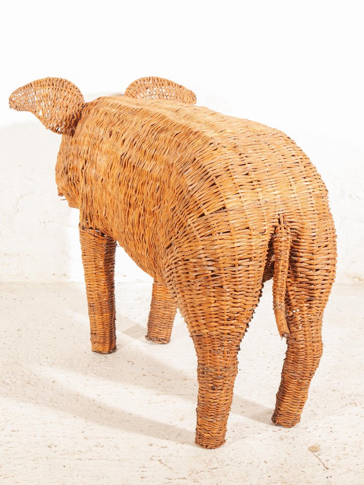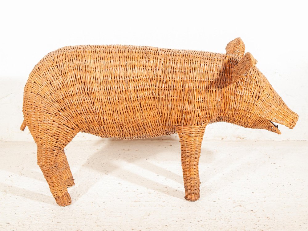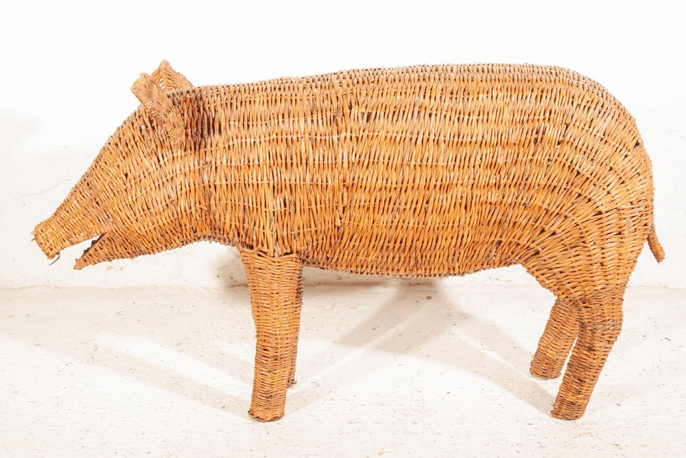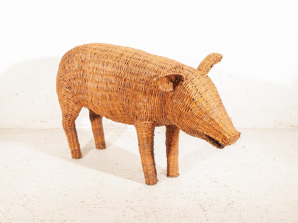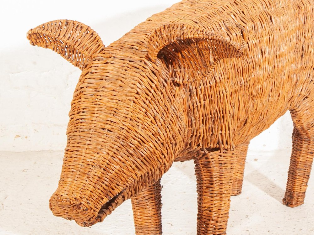 Große Schweinsskulptur aus Korbgeflecht von M.Lopez Torres, 1974