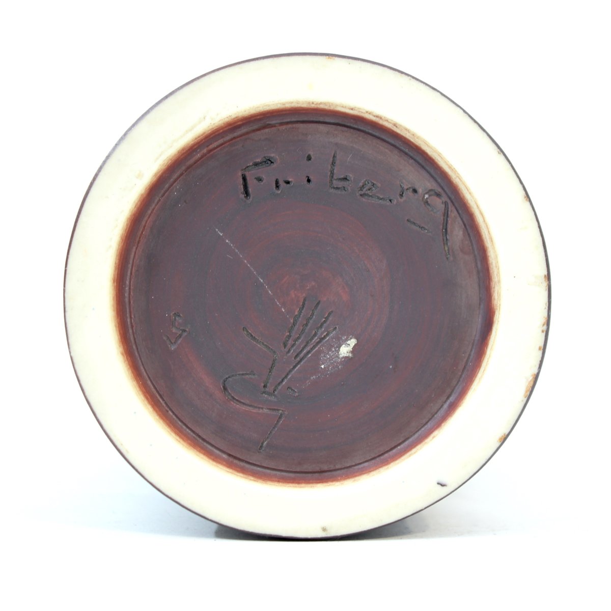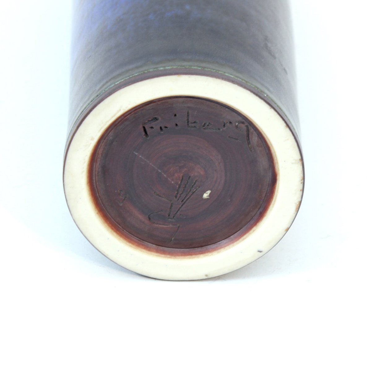 Berndt Friberg (1899-1981) war ein schwedischer Keramikkünstler, der in den 1950ern besonders aktiv war. Er war für sein meisterliches Können bezüglich der Form und seine geometrischen und glänzenden Glasuren bekannt. Ihm wird außerdem, gemeinsam mit seinen Mentoren Wilhelm Kåge und Stig Lindberg zugeschrieben, das G-Studio von Gustavsberg in das goldene Zeitalter der Keramik geführt zu haben.