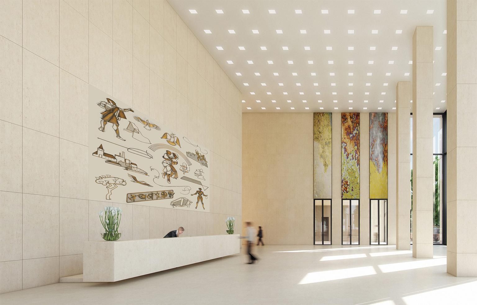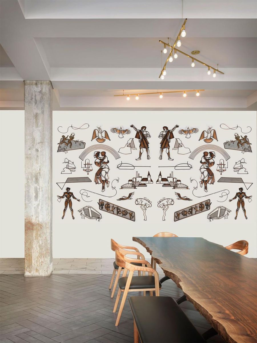 It would make a marvelous statement piece in a restaurant, hotel lobby or huge wall in a loft. Take a look at the photoshopped examples of the effect it would have on the space.