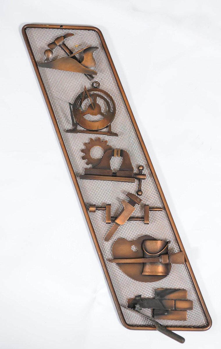 This beautifully crafted copper artwork was made by Huibert de Ru, a well known Dutch painter and graphic designer. It was destined for a Dutch school, probably in the 1950's but possibly even in the prewar period.