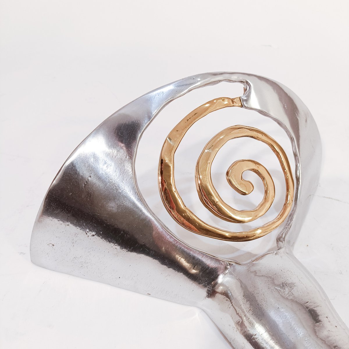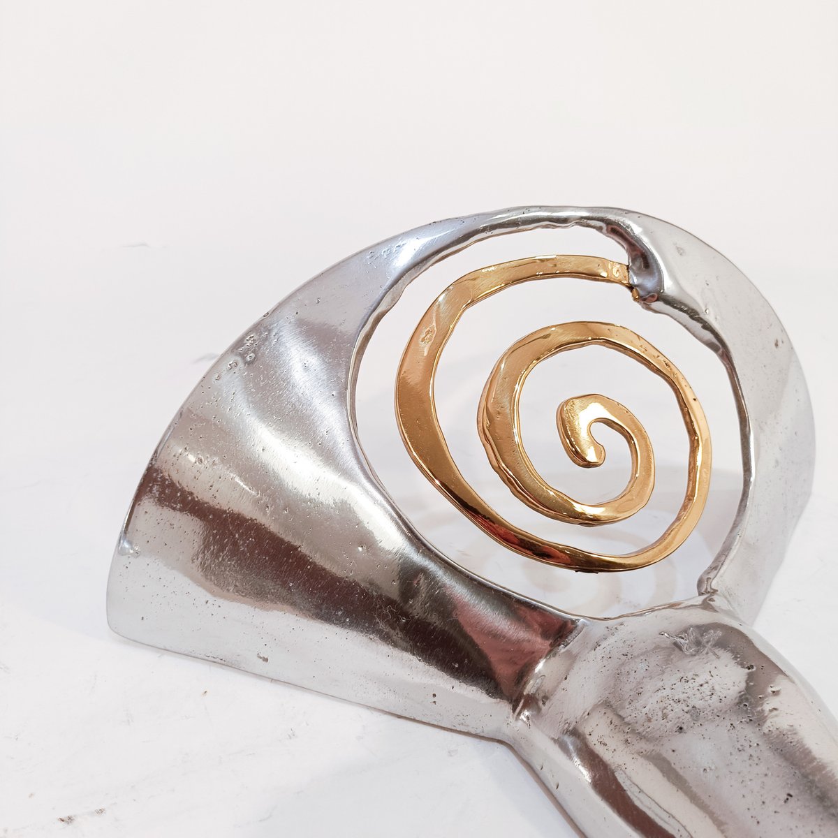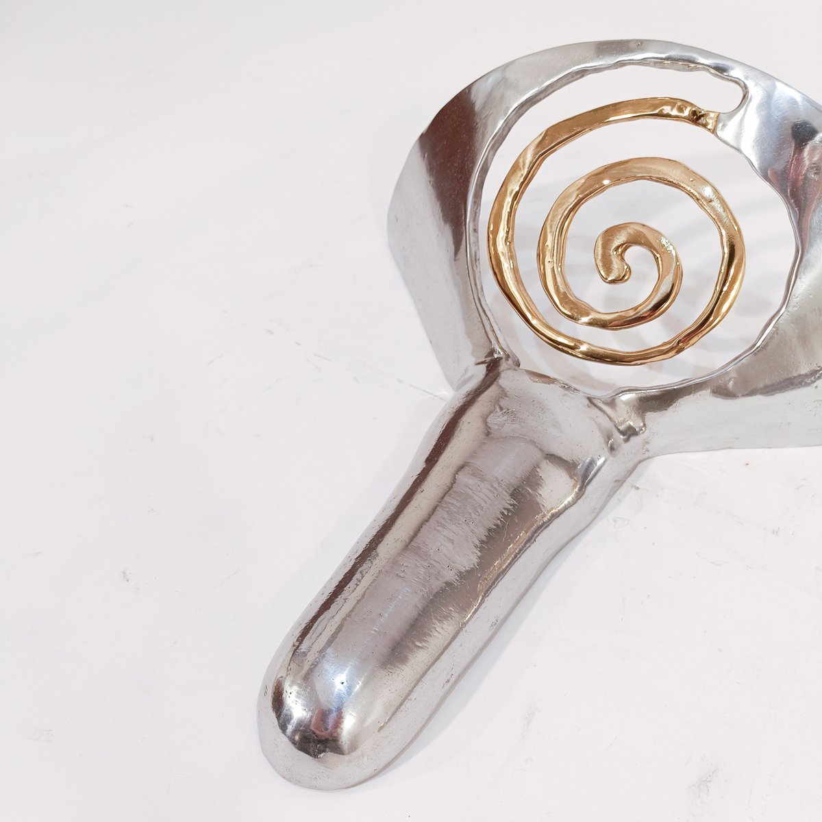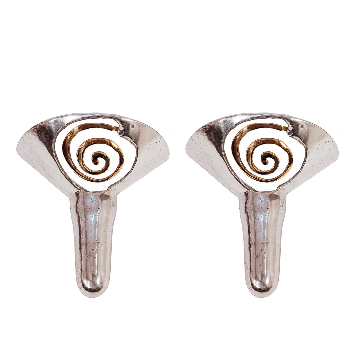 Set of two huge wall sconces by David Marshall, Spain, 1970s. Set of two extraordinary brutalist wall sconces made and signed (see photos) by David Marshall. Cup-shaped body and made of aluminum and golden brass. Each piece has two rear anchors (one of them missing, but easily repairable, see photos). These wall lights can be placed on the wall without electrical installation as decorative elements, or installed in a wall light point to create a unique lighting effect. Very much in the style of the brutalist creations of the 70s by the Spanish designer Alfonso Márquez. Very rare, collectible pieces.