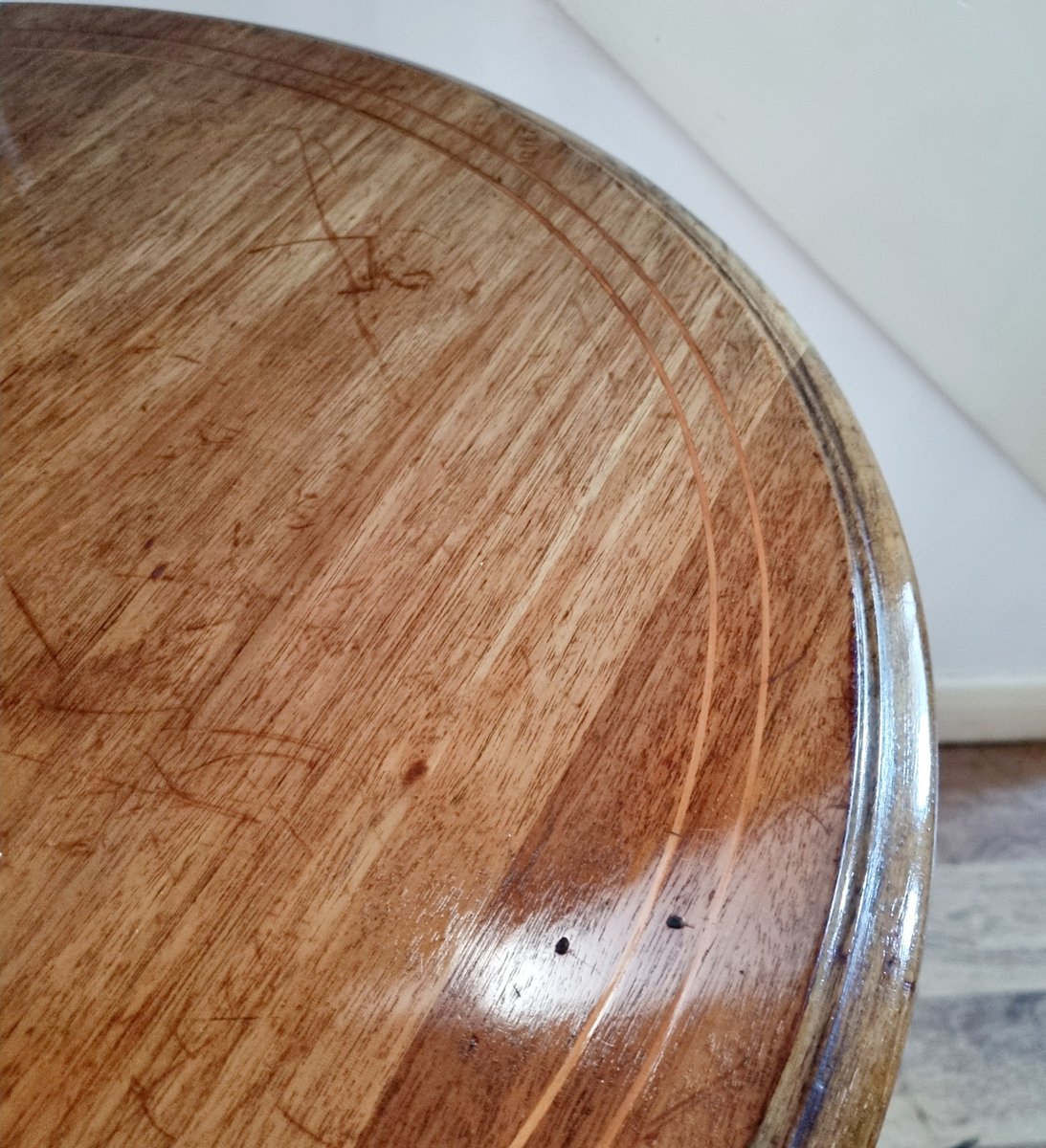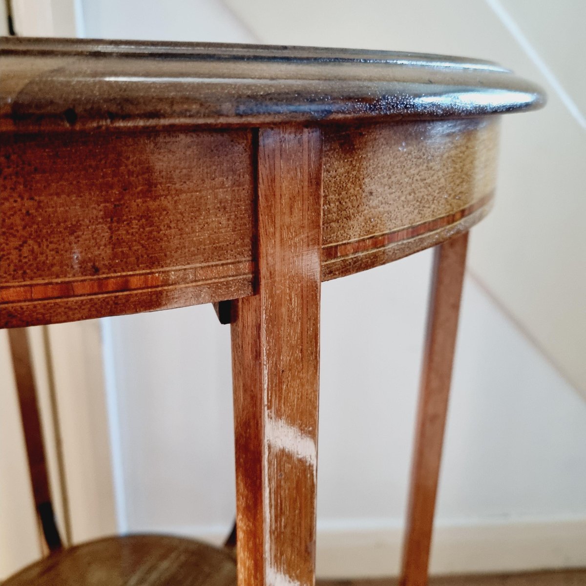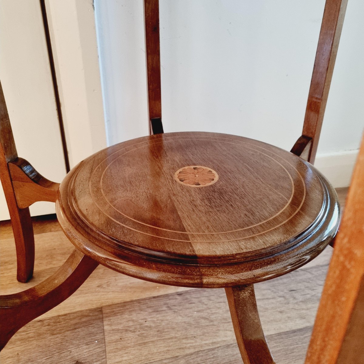 Großer antiker Beistelltisch oder Pflanzenständer aus Mahagoni und Satinholz mit Intarsien
