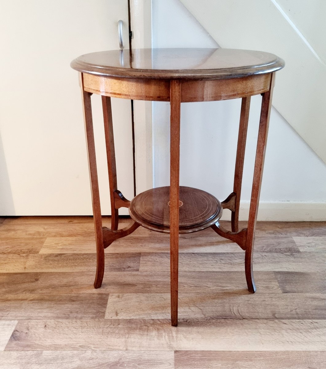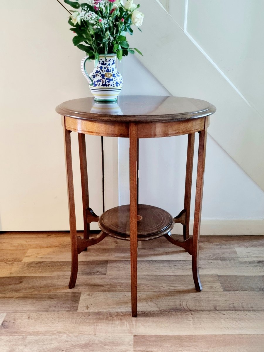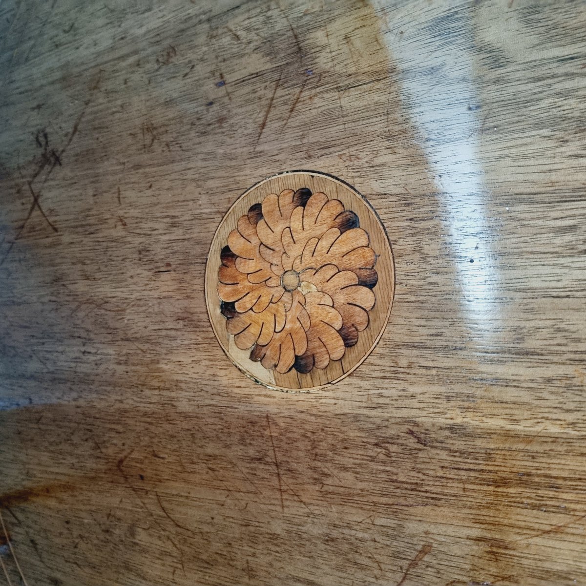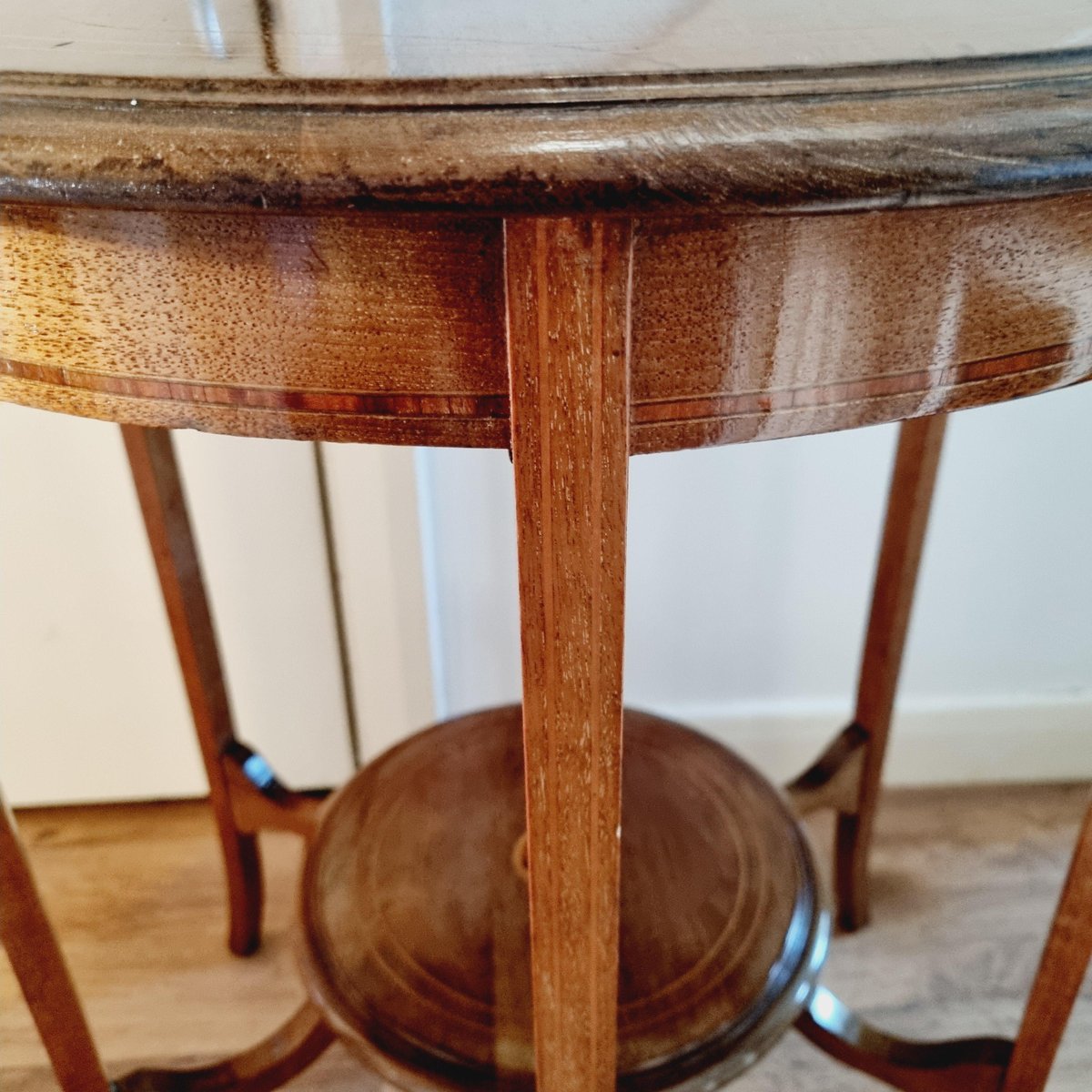 Großer antiker Beistelltisch oder Pflanzenständer aus Mahagoni und Satinholz mit Intarsien