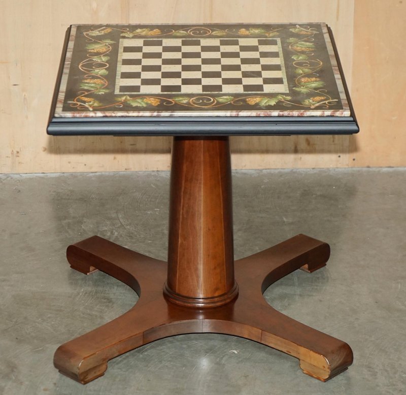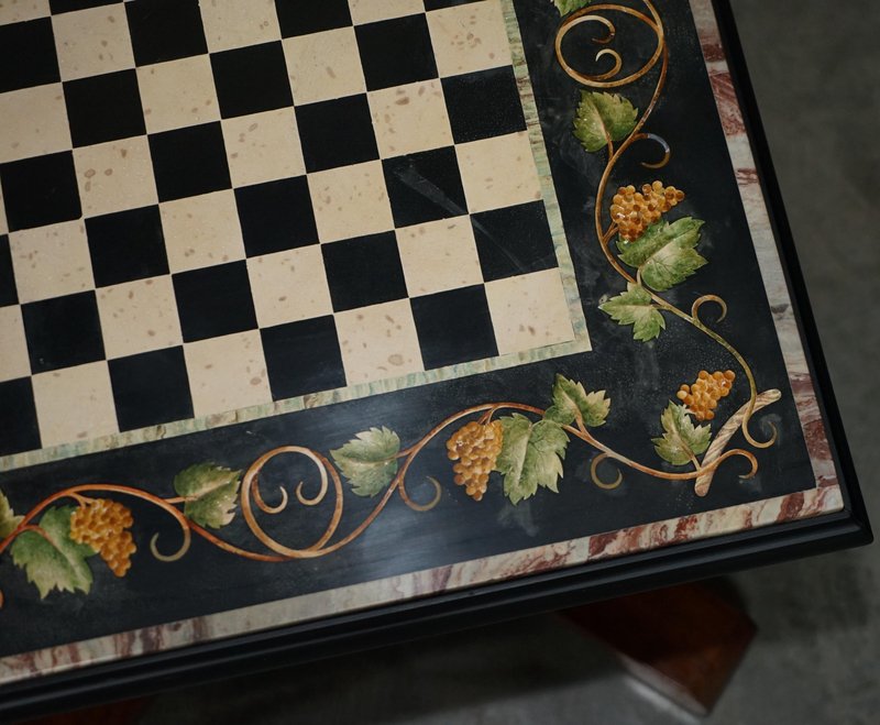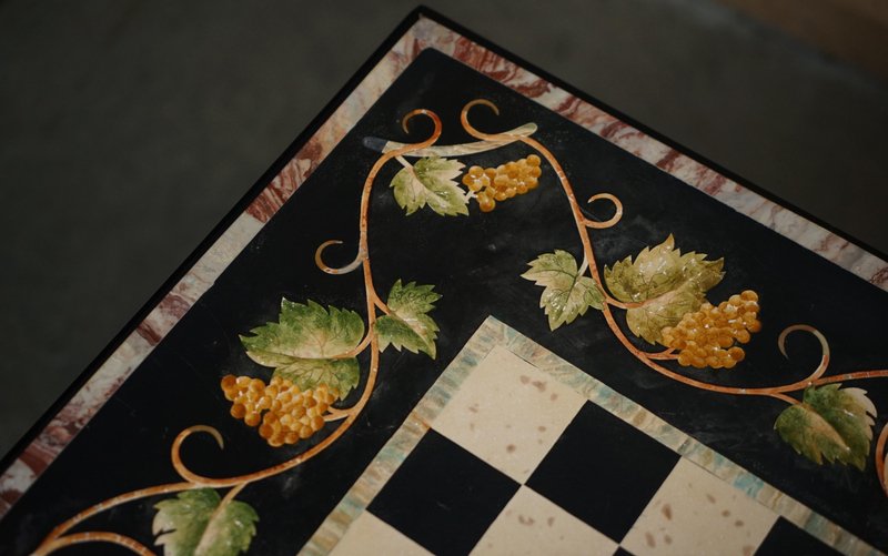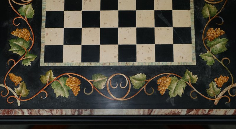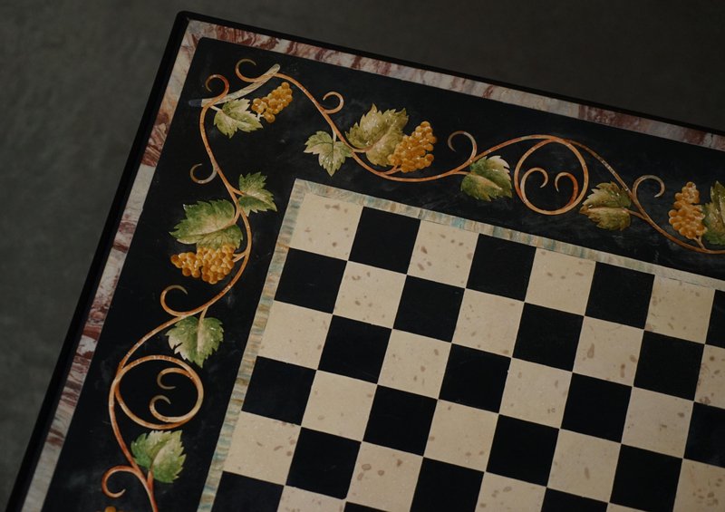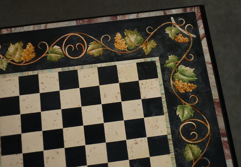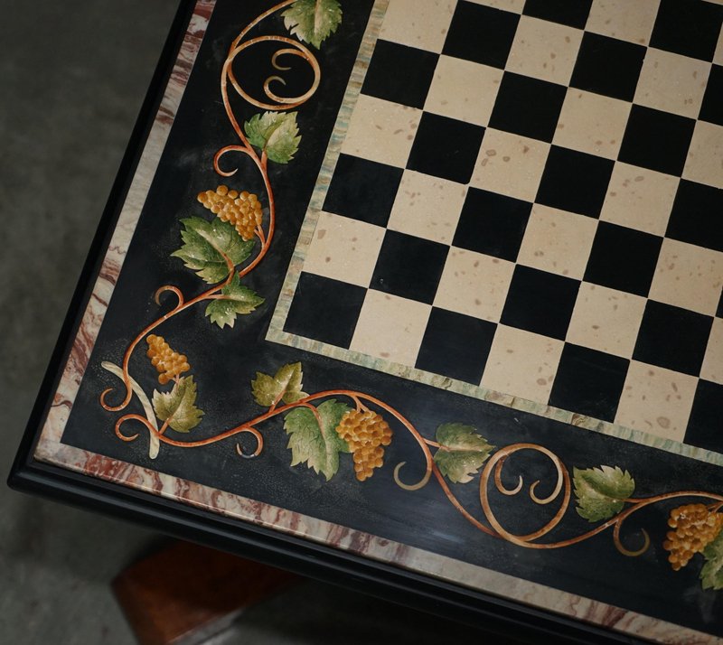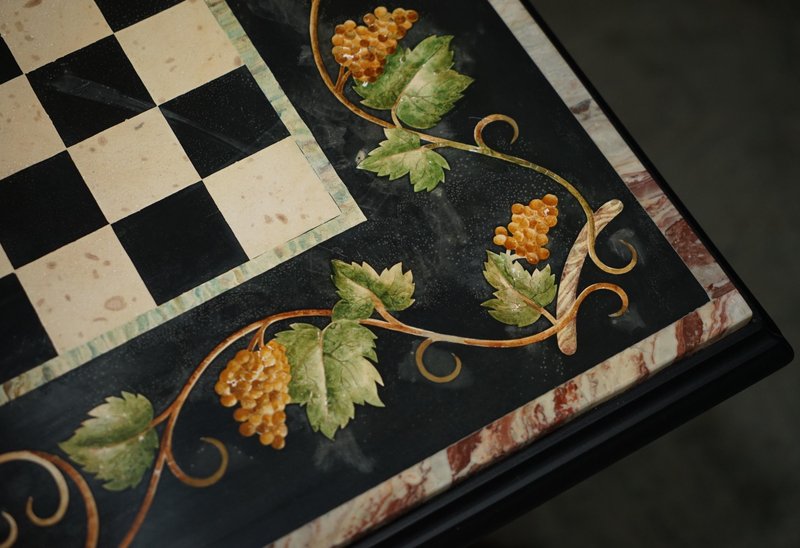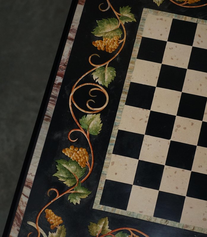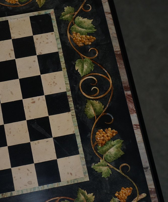 Großer antiker Pietra Dura Schachbretttisch aus Marmor mit Intarsien und Kirschholzgestell, 1880