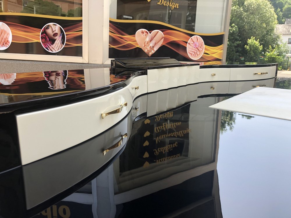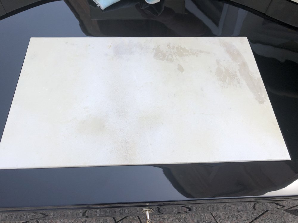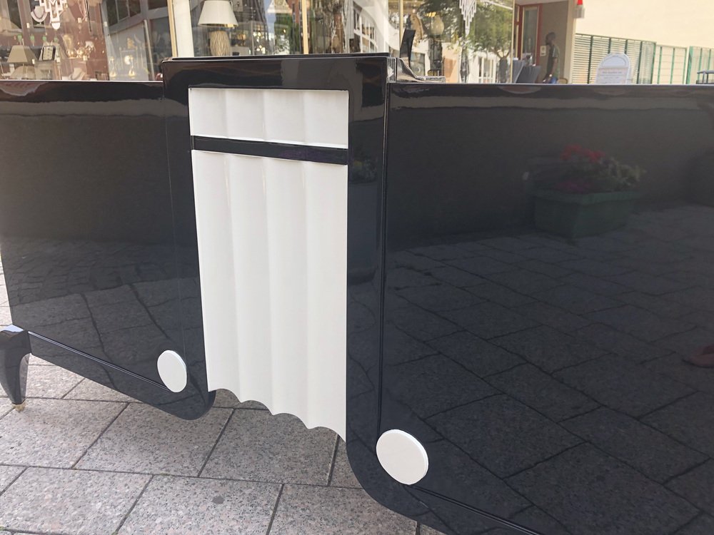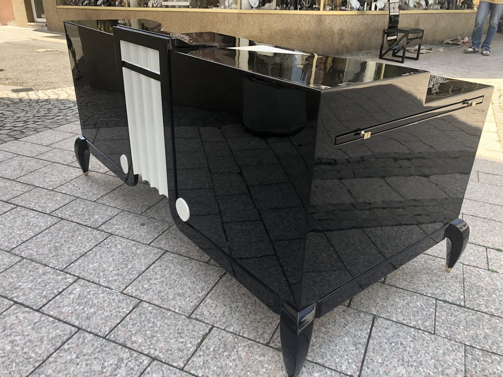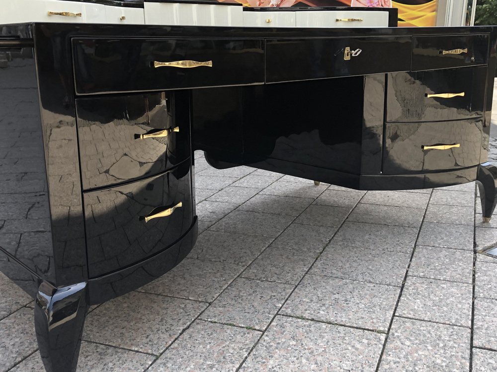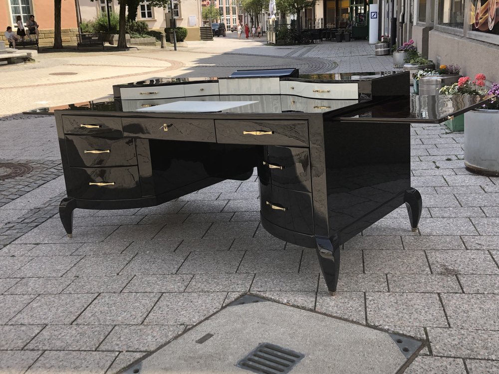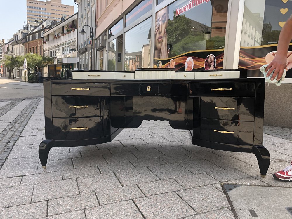 Großer Art Deco Schreibtisch aus lackiertem & schwarzem Pergamentleder von Assi D´asolo, Italien