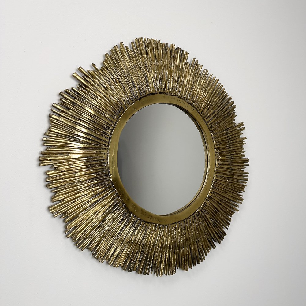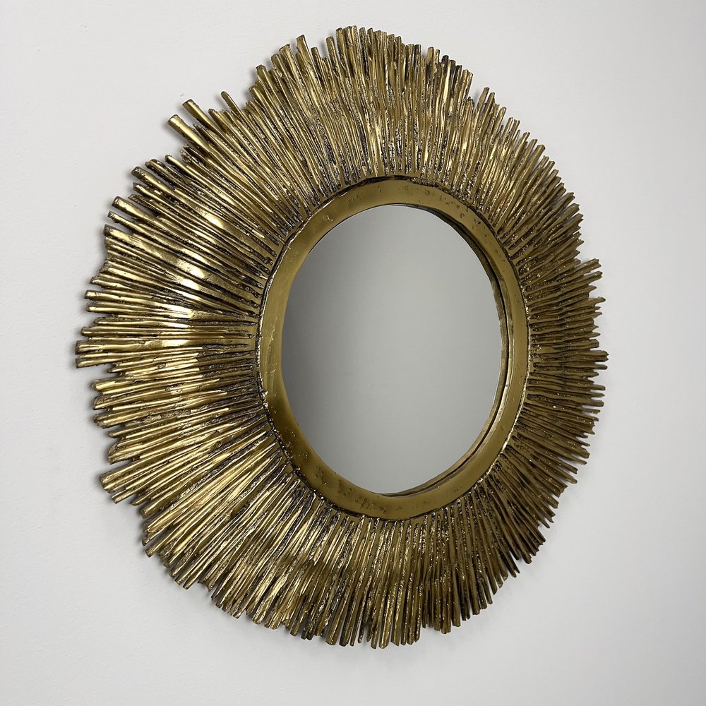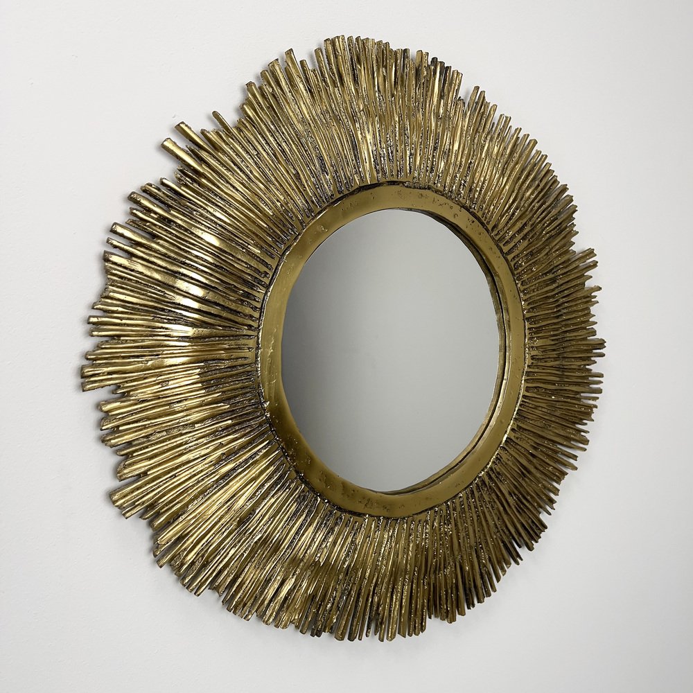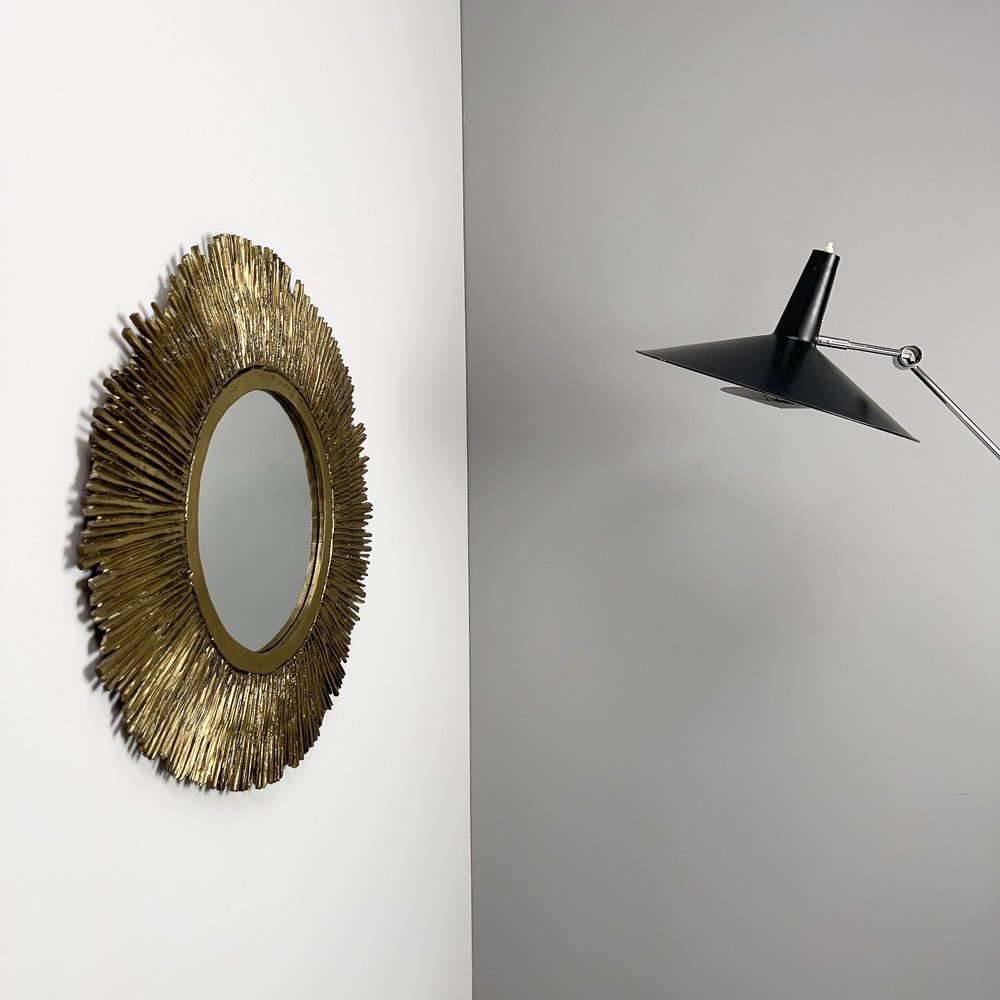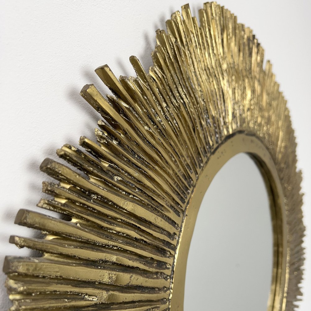 Großer handgefertigter Sonnenstrahl-Spiegel aus Messing, Frankreich, 1970er