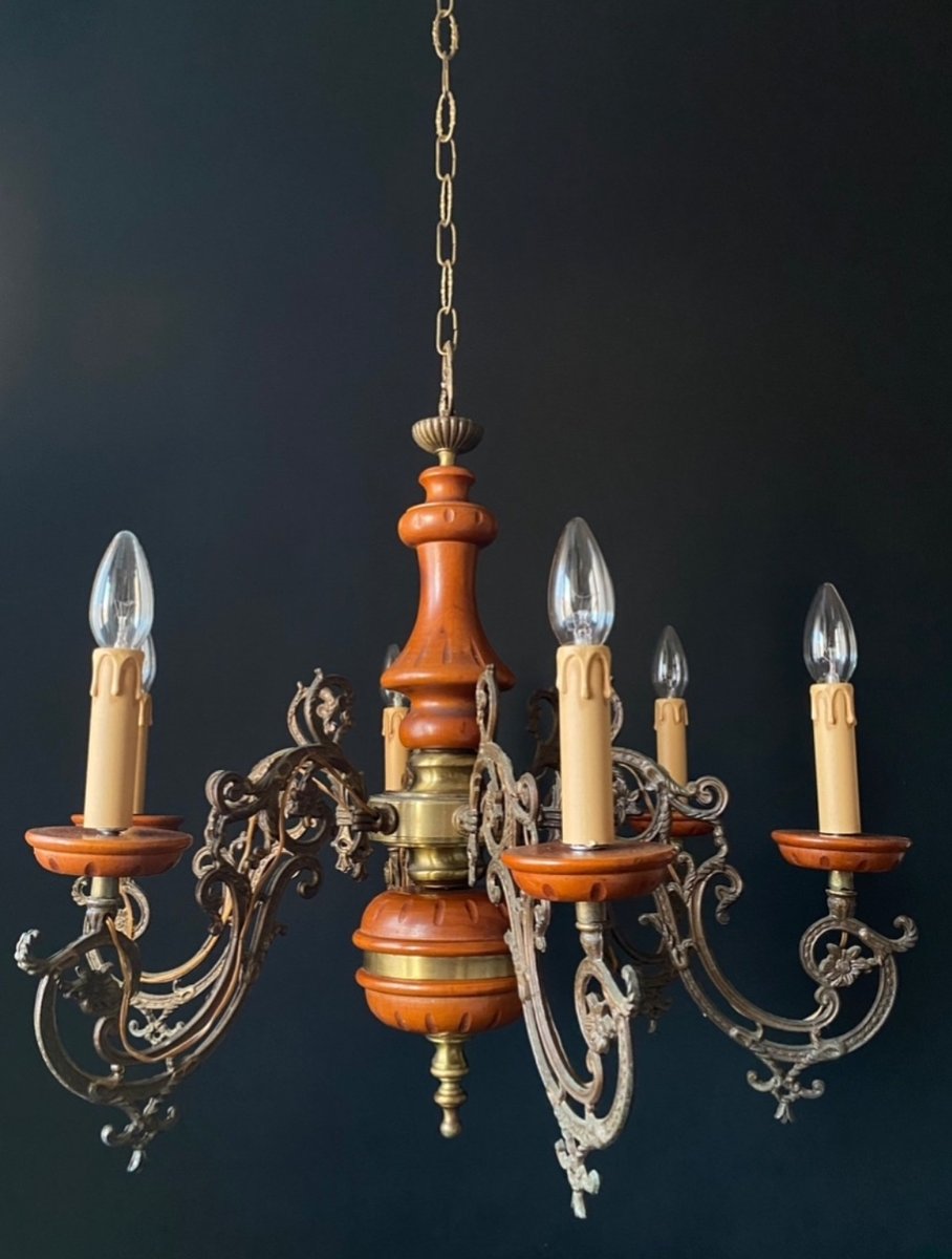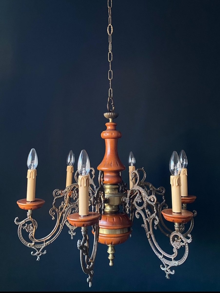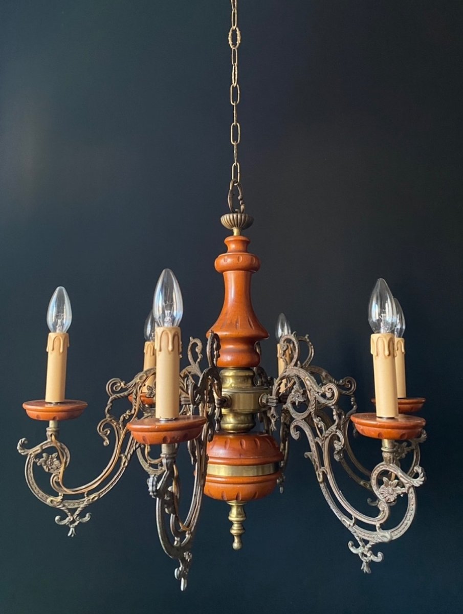 Großer Kronleuchter aus Holz, 1960er