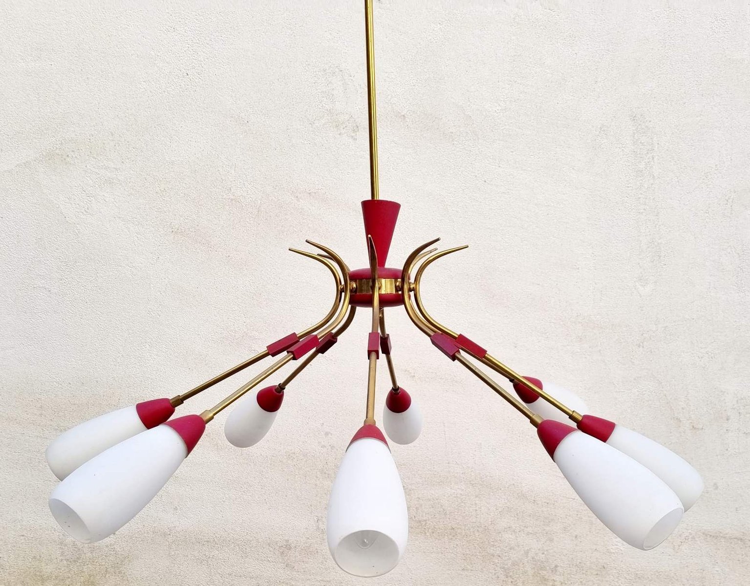Großer moderner italienischer Sputnik Kronleuchter im Stilnovo Stil, Italien, 1960er