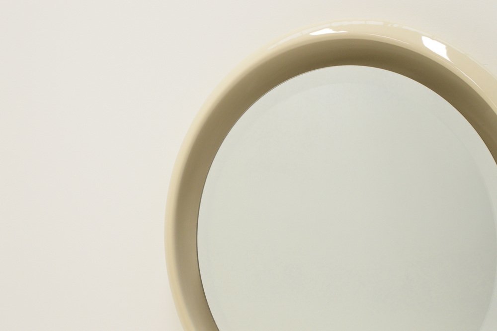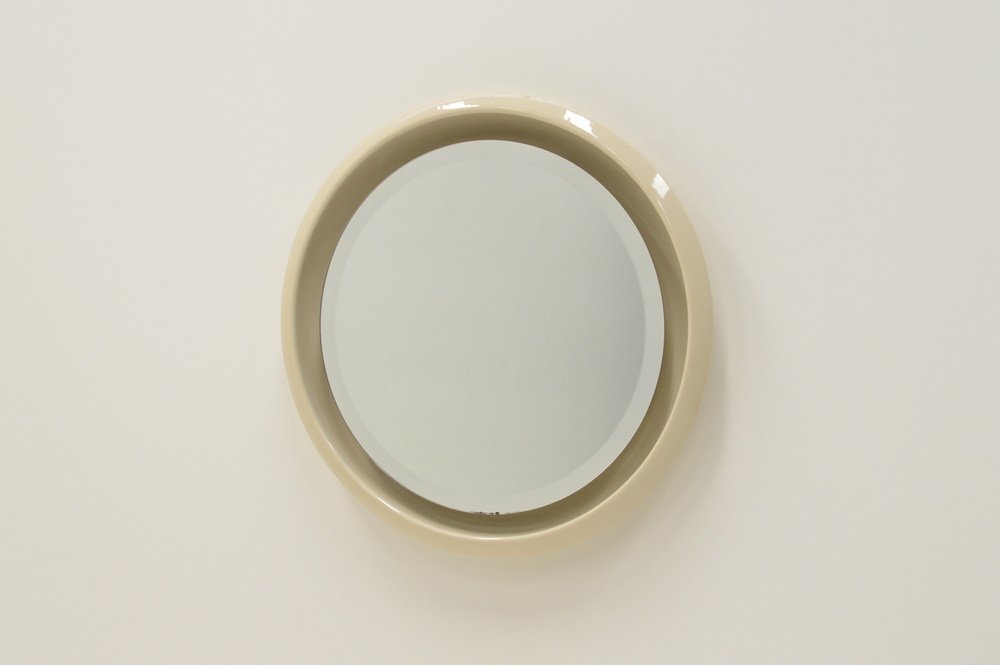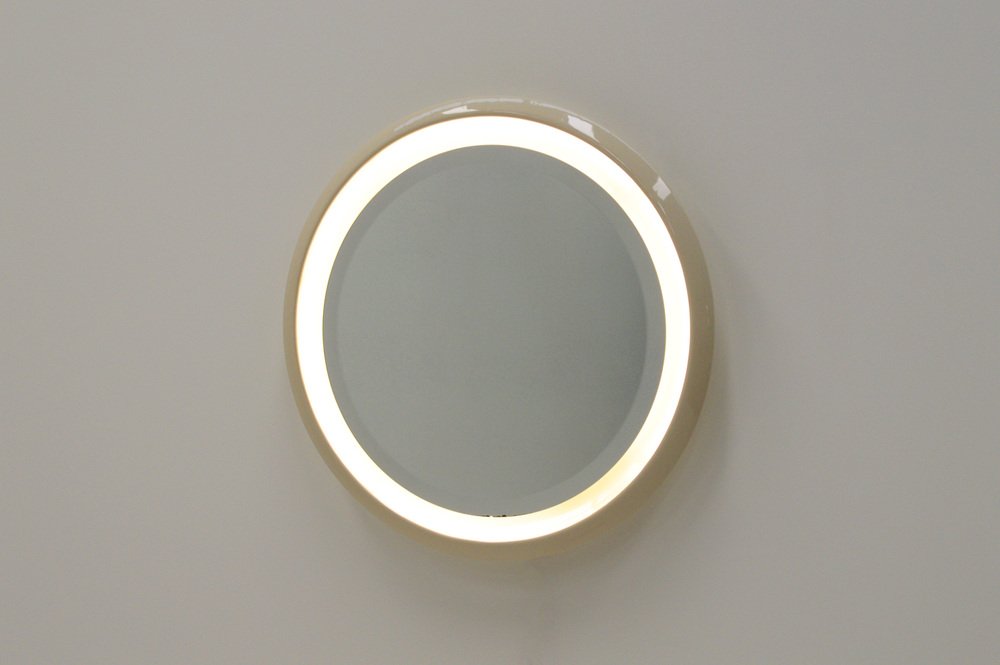 Großer runder Keramikspiegel mit Beleuchtung, 1960er