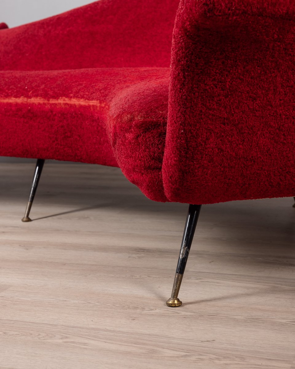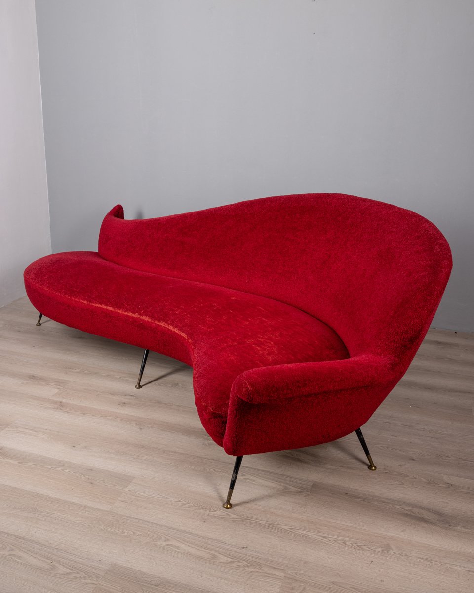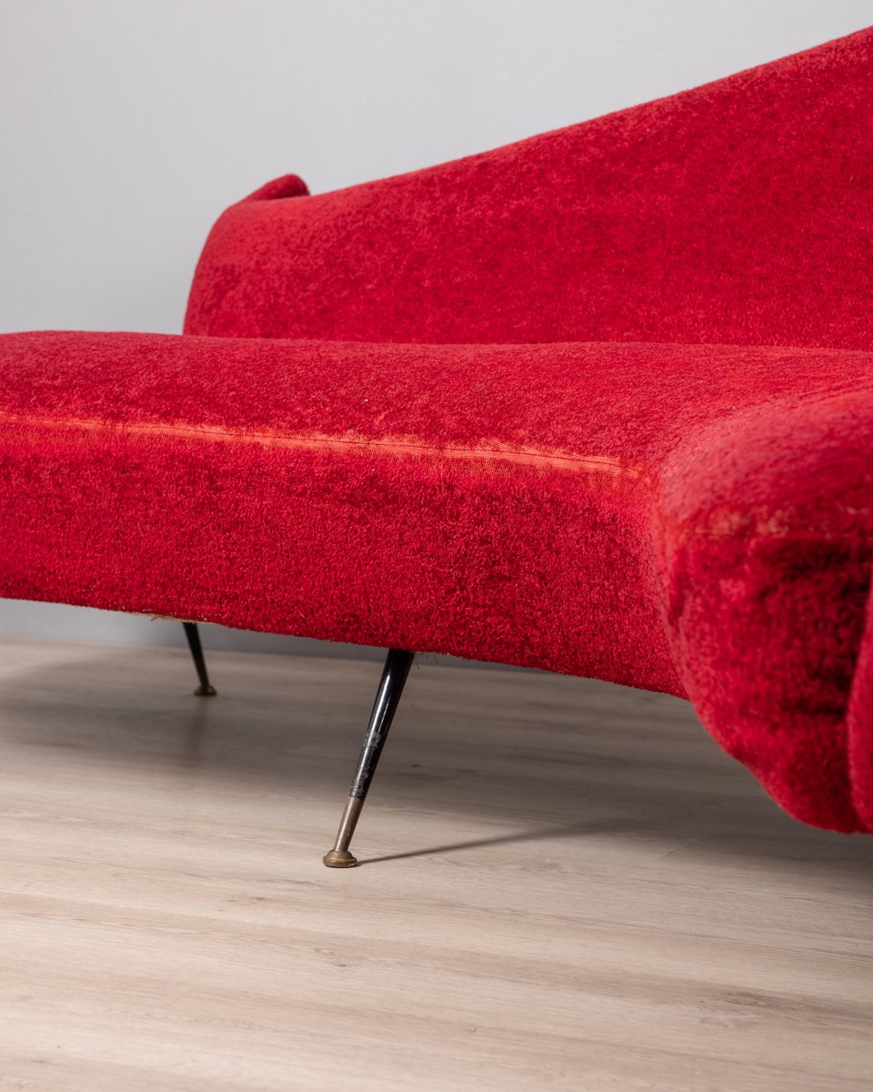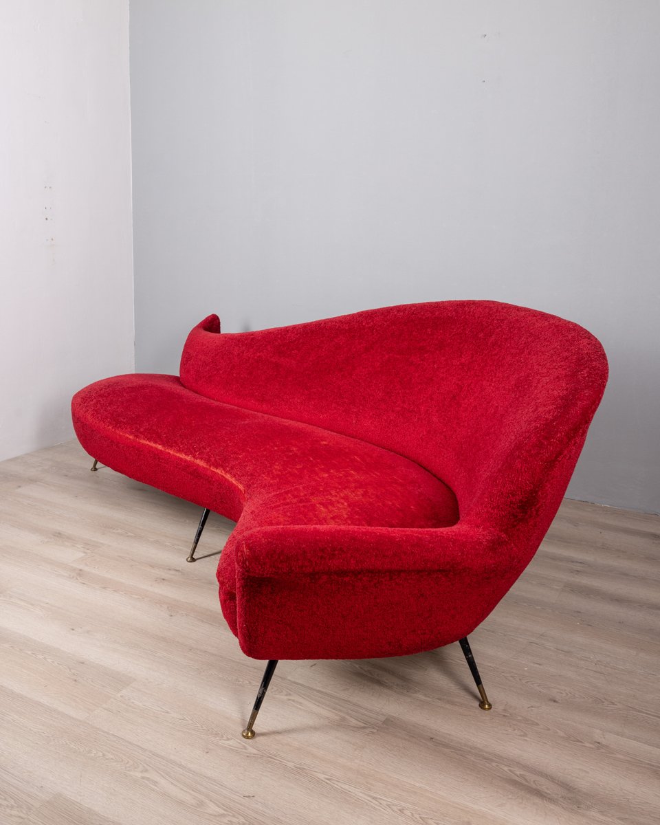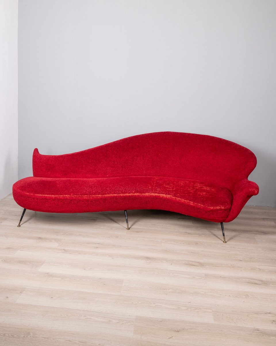 Großes geschwungenes Vintage Sofa aus rotem Samt, 1950er