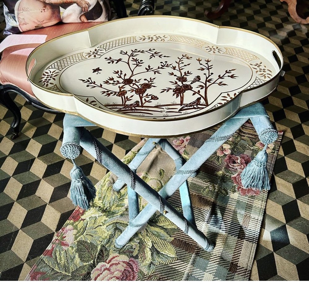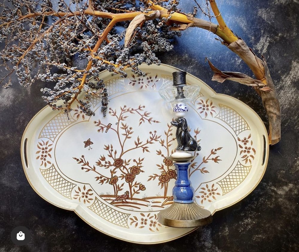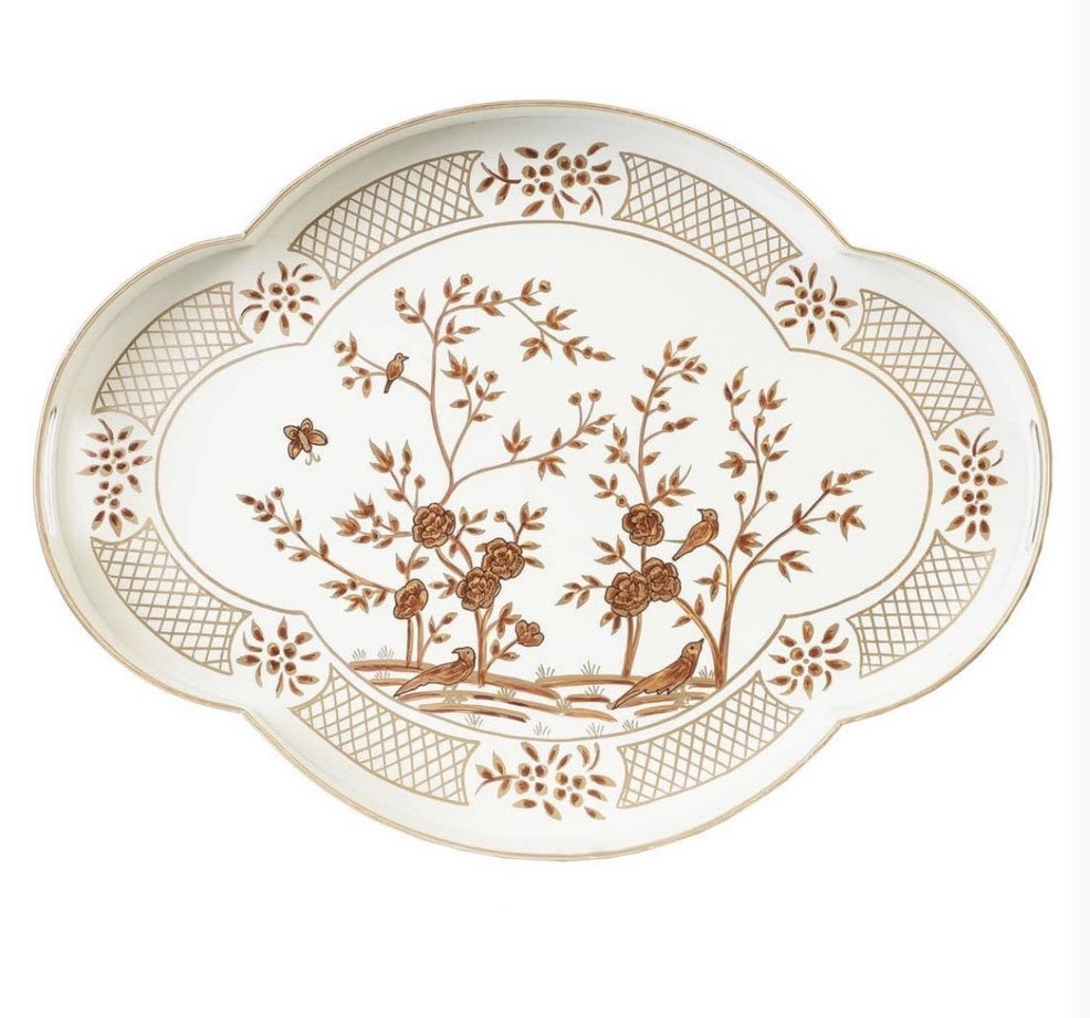 Großes ovales Chinoiserie Tablett in Elfenbein von The Enchanted Home