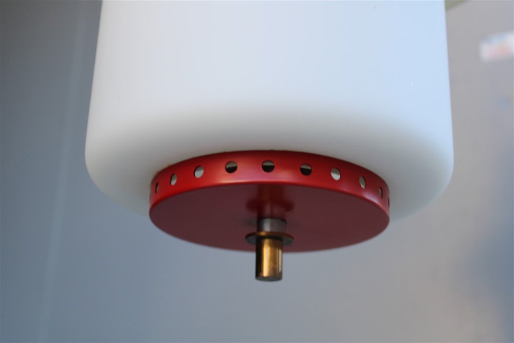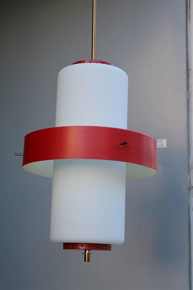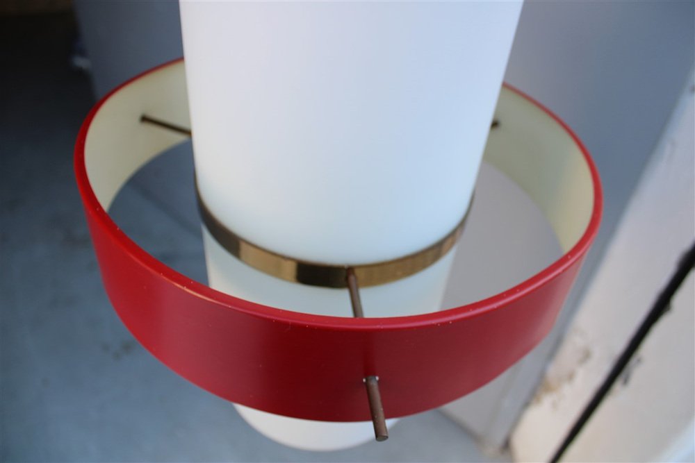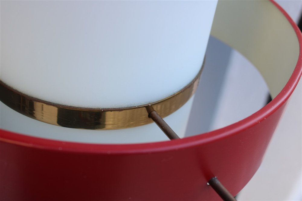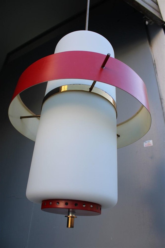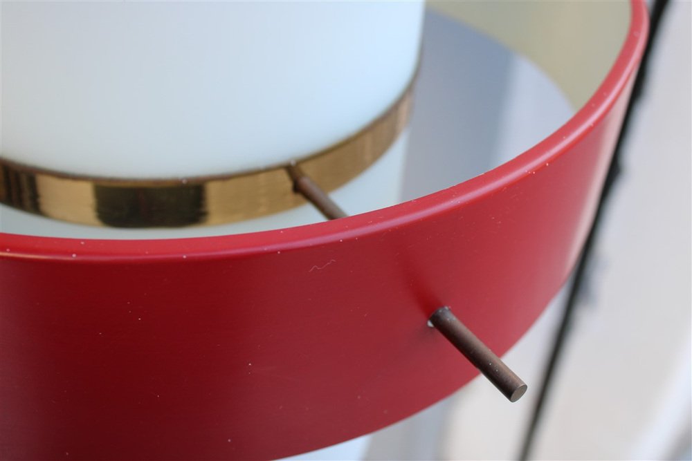 Hängelampe aus Messingglas & Rot lackiertem Metall von Angelo Brotto für Esperia, 1950