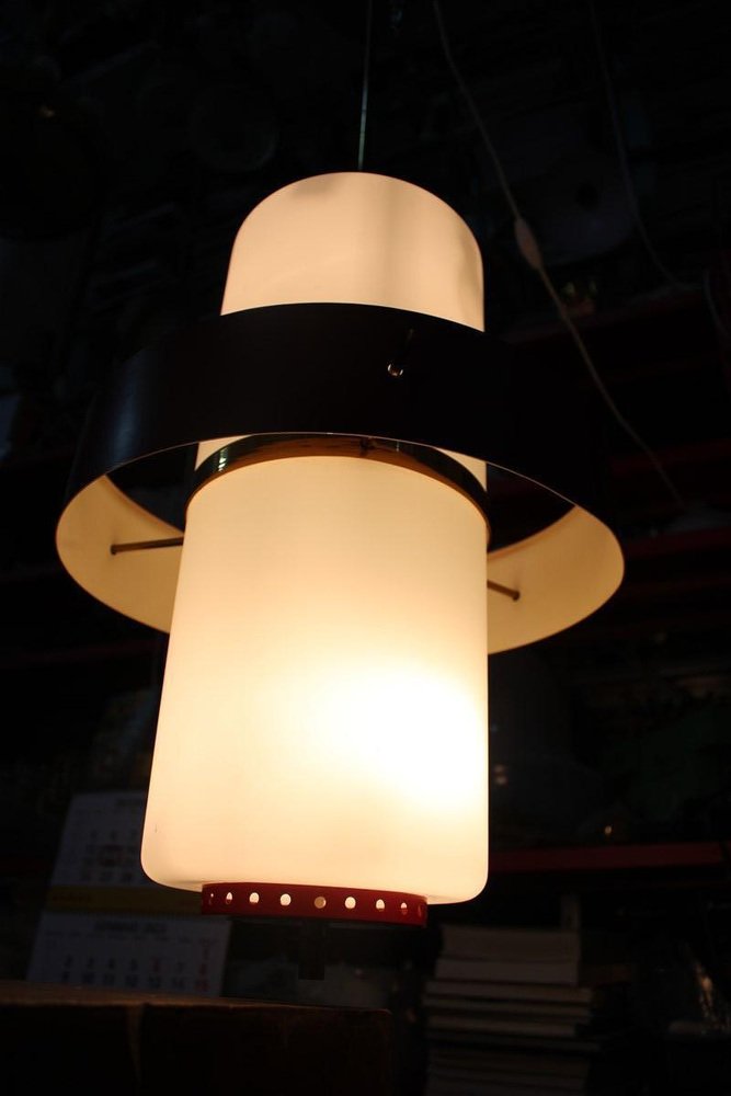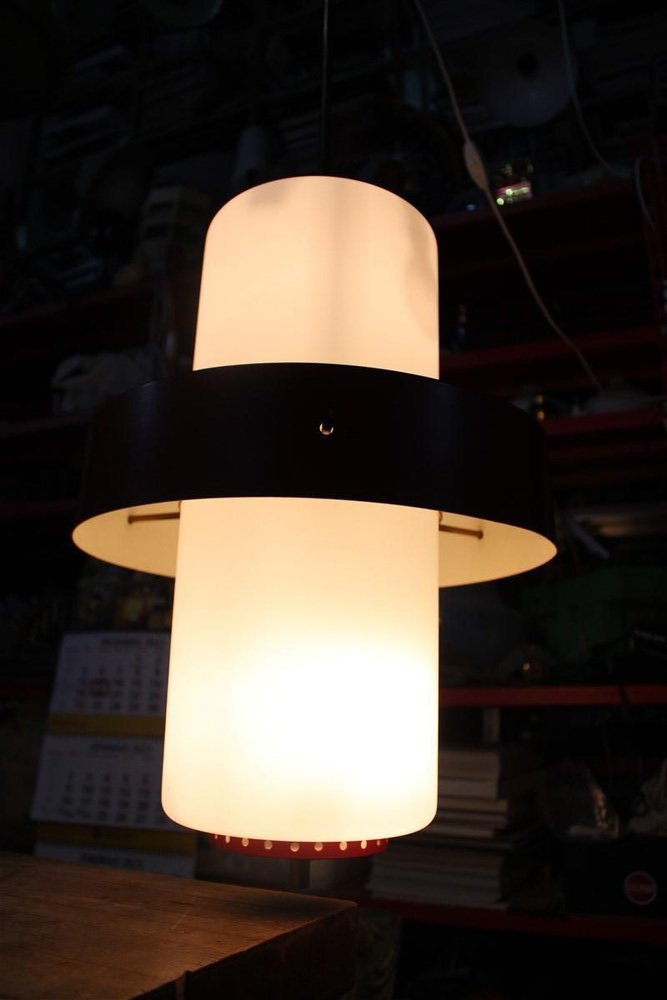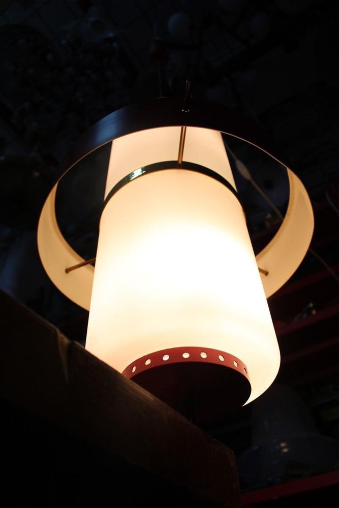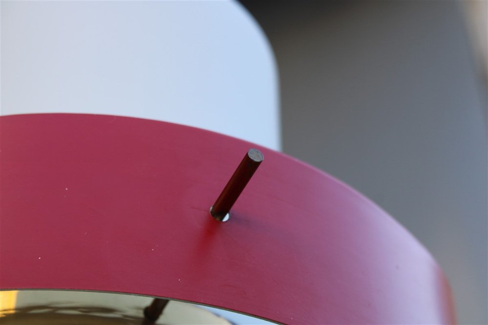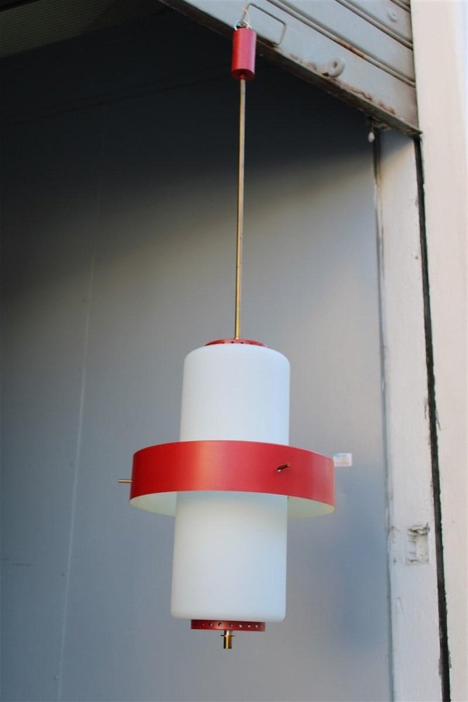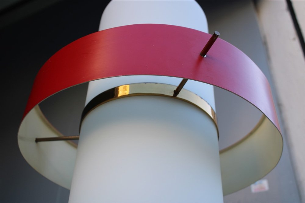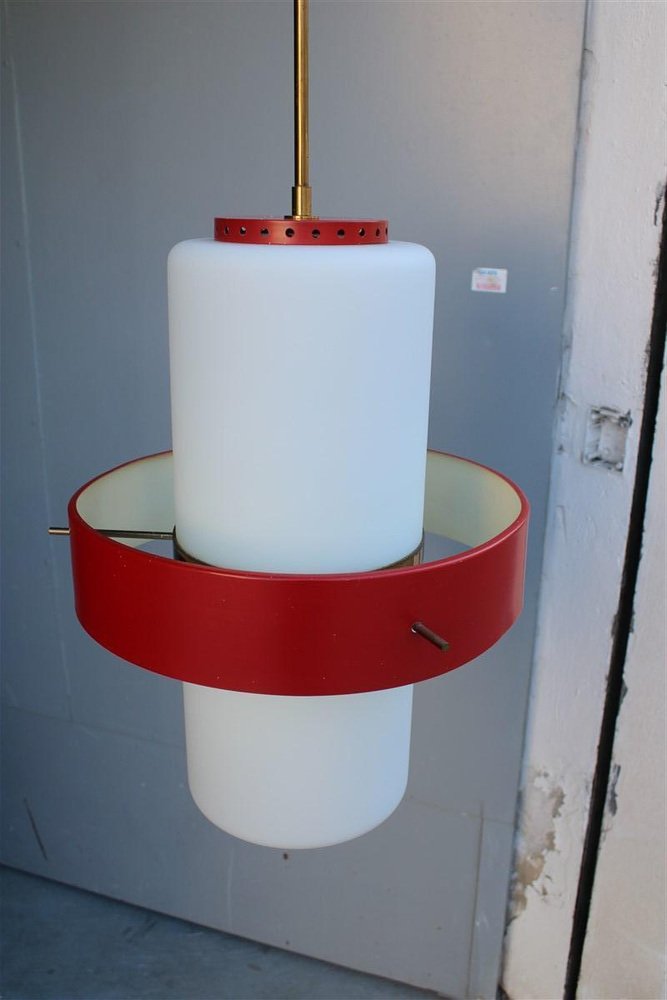 Hängelampe aus Messingglas & Rot lackiertem Metall von Angelo Brotto für Esperia, 1950