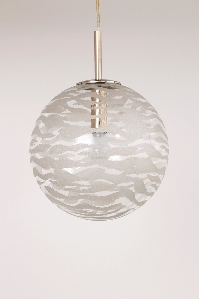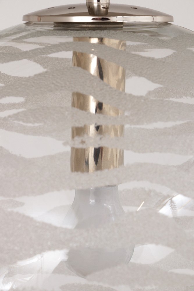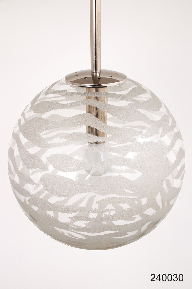 Entdecken Sie den Charme vergangener Zeiten mit dieser schönen Vintage-Hängelampe von Fischer Leuchten. Ein authentisches Stück aus den 1970er Jahren, hergestellt in Deutschland, das Ihrem Interieur einen einzigartigen und attraktiven Look verleiht. Die Lampe wurde sorgfältig aufbewahrt und ist in einem ausgezeichneten Zustand, bereit, Ihren Raum zu beleuchten. Die Kombination aus glänzendem Chrom und dem weißen Muster auf dem Glas sorgt für eine schöne Lichtverteilung, die jeden Raum erhellt. Diese Hollywood-Regency-Schönheit ist nicht nur eine Lichtquelle, sondern auch ein stilvolles Dekorationsstück, das jeden Raum bereichert.