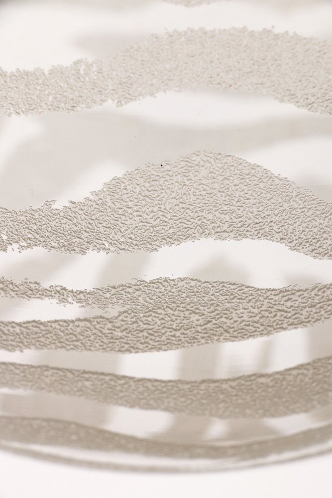 Unique light distribution through white pattern on glass