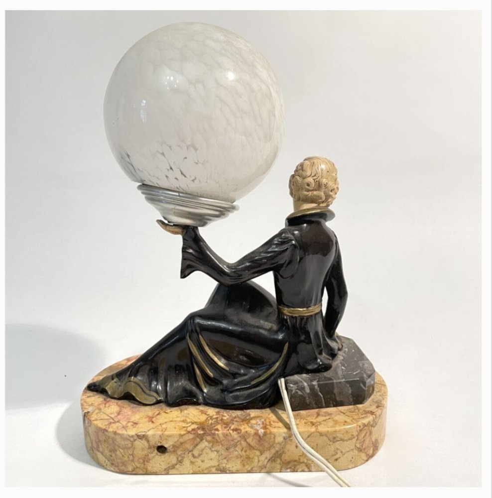 Handbemalte Art Deco Tischlampe auf Marmorsockel