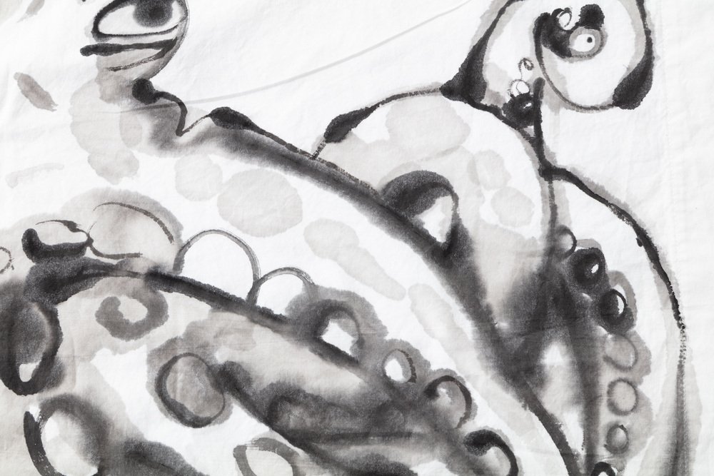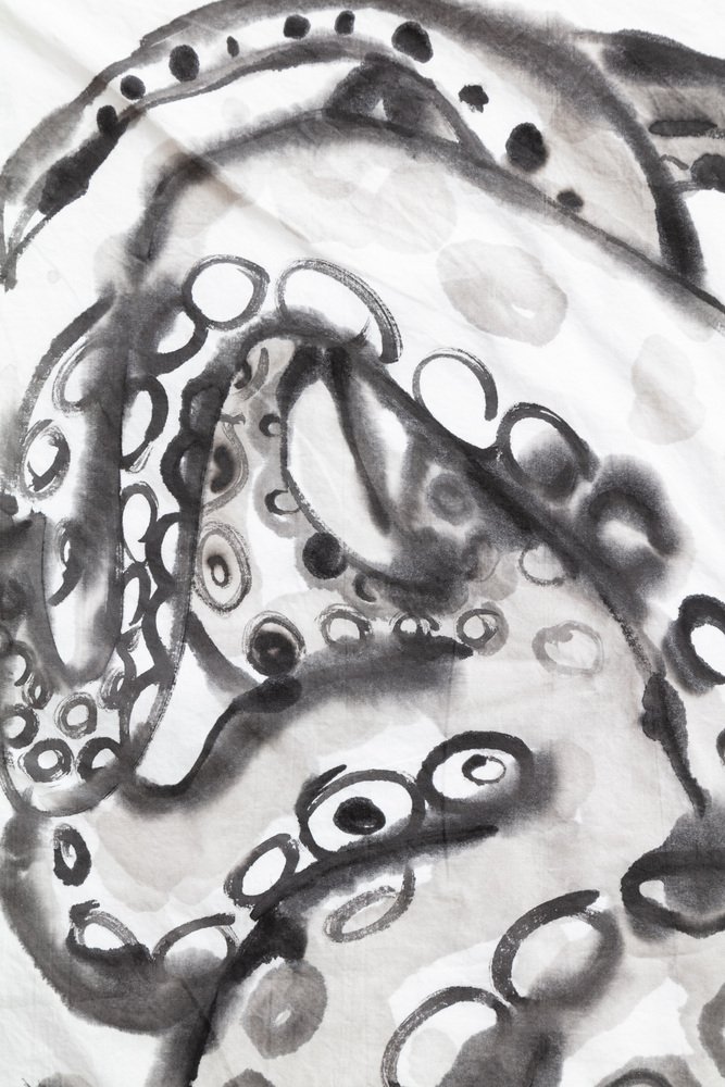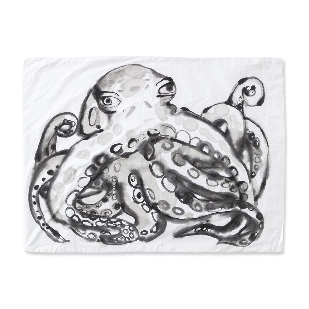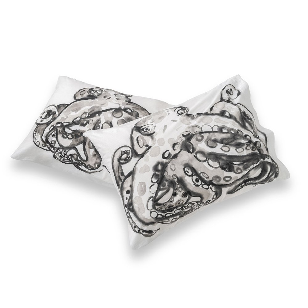 Handbemalte Octopus Kissenbezüge aus Baumwolle von Jodie Niss, 2er Set