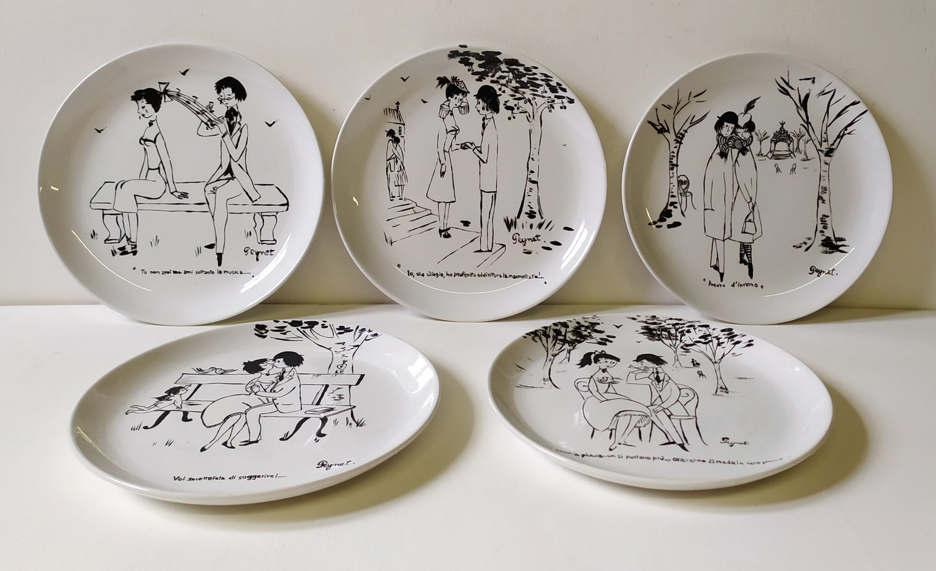Handbemalte Teller von Raimond Peynet für SCI Laveno, 1960er, 5er Set