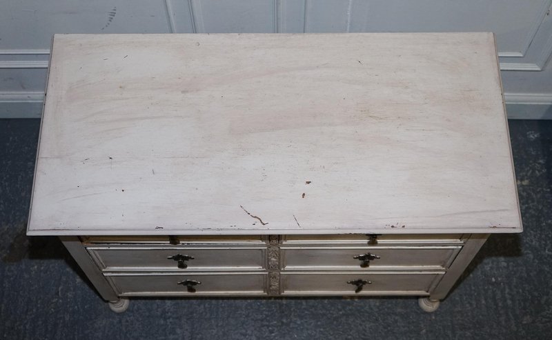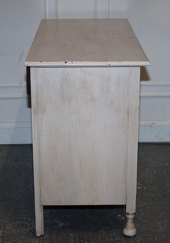 Eine charmante antike viktorianische Kommode, wunderschön handbemalt in einem zarten Elfenbeinweiß, das die klassischen Linien des 19. Jahrhunderts hervorhebt. Jahrhundert hervorhebt. Dieses Stück verbindet zeitlose viktorianische Handwerkskunst mit einem frischen, aufmunternden Finish, wodurch es sich sowohl für traditionelle als auch für zeitgenössische Interieurs eignet. Die Kommode verfügt über wohlproportionierte Schubladen mit originalen Messinggriffen, die einen warmen Kontrast zur elfenbeinfarbenen Lackierung bilden und den historischen Charakter des Möbels unterstreichen. Die Handbemalung verleiht der Oberfläche eine subtile Textur und Tiefe, so dass die Form und die Leisten anmutig zur Geltung kommen. Elegant, praktisch und voller Persönlichkeit bietet diese viktorianische Kommode viel Stauraum und ist gleichzeitig ein raffiniertes dekoratives Element. Ideal für Schlafzimmer, Flure oder Wohnräume, die eine Mischung aus antikem Charme und moderner Zartheit suchen.