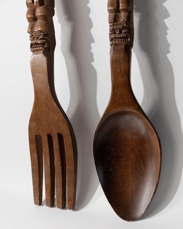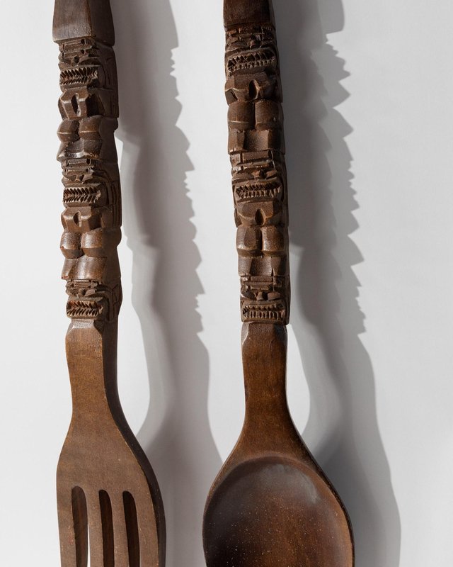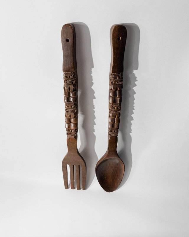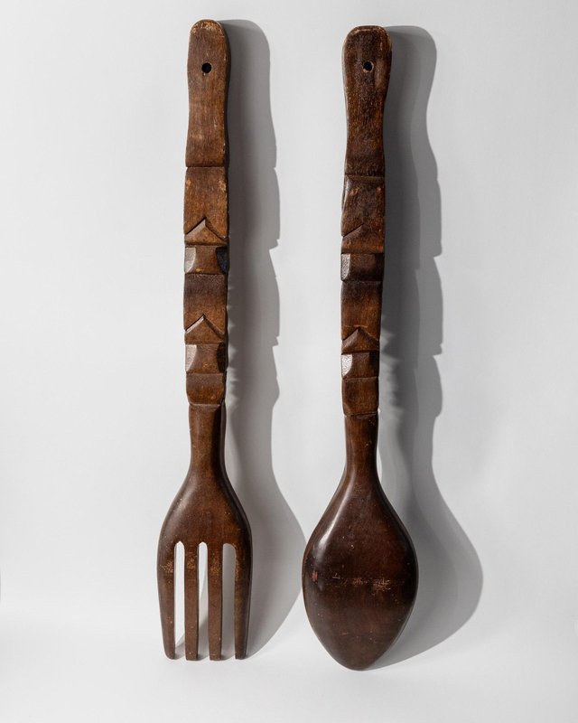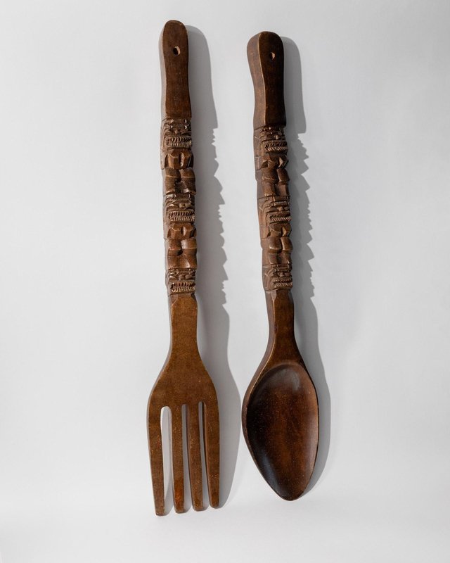 Handgeschnitzte italienische Vintage Volkskunst Gabel und Löffel, 1960er, 2er Set