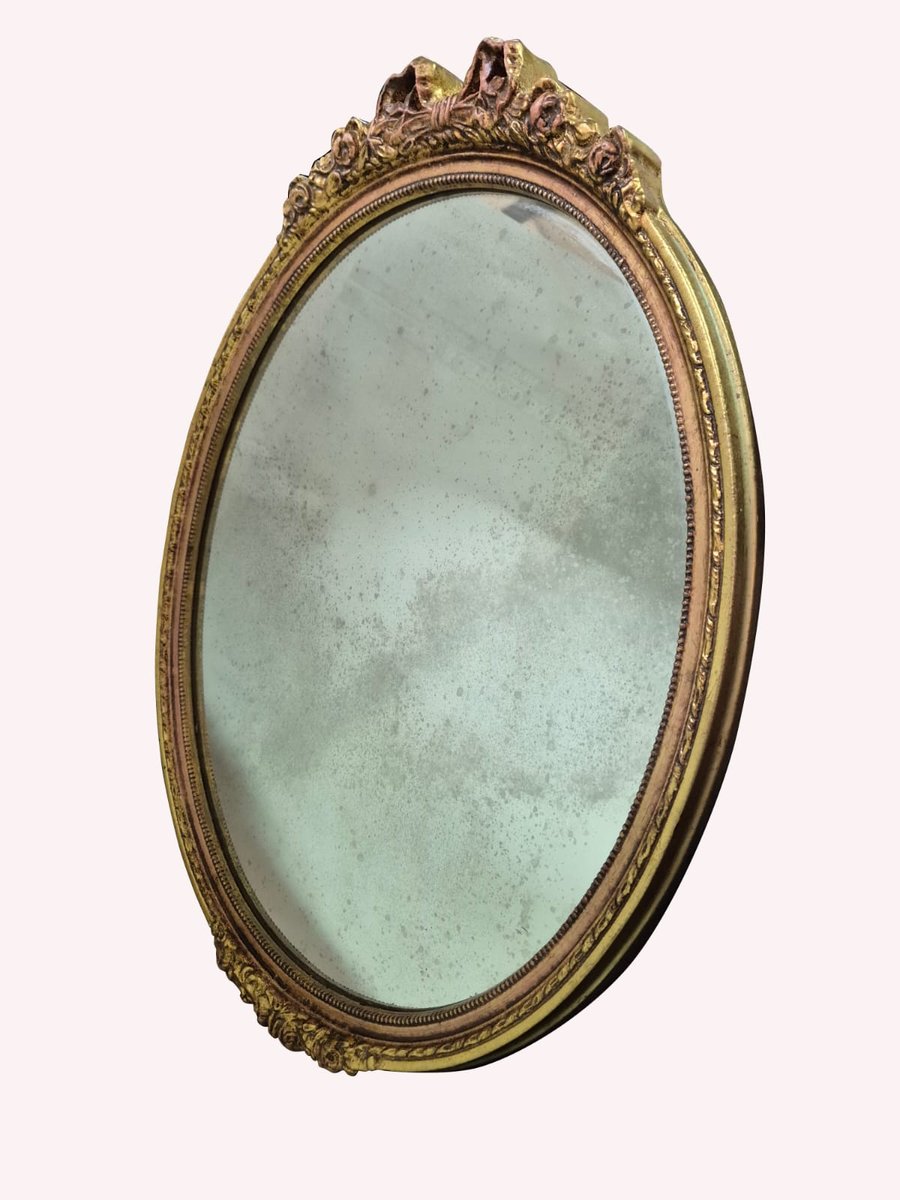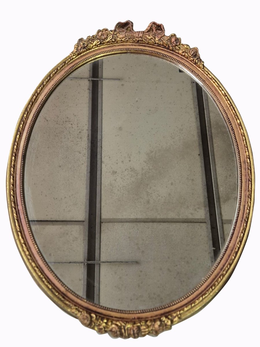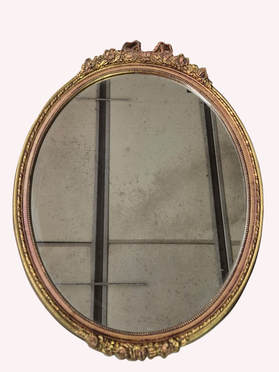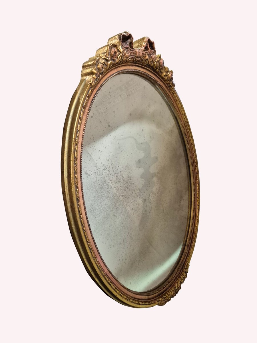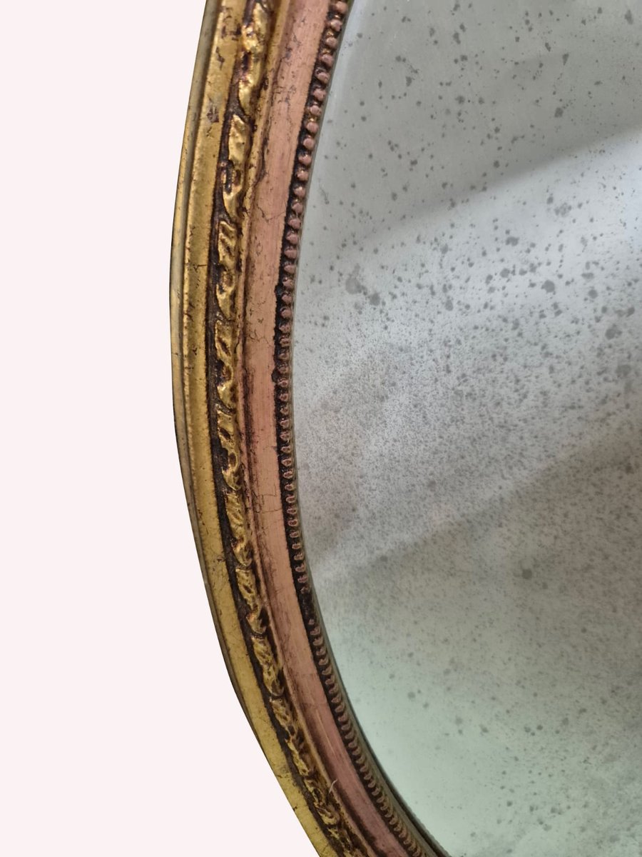 Handgeschnitzter und vergoldeter Ovaler Wandspiegel, frühes 19. Jh.