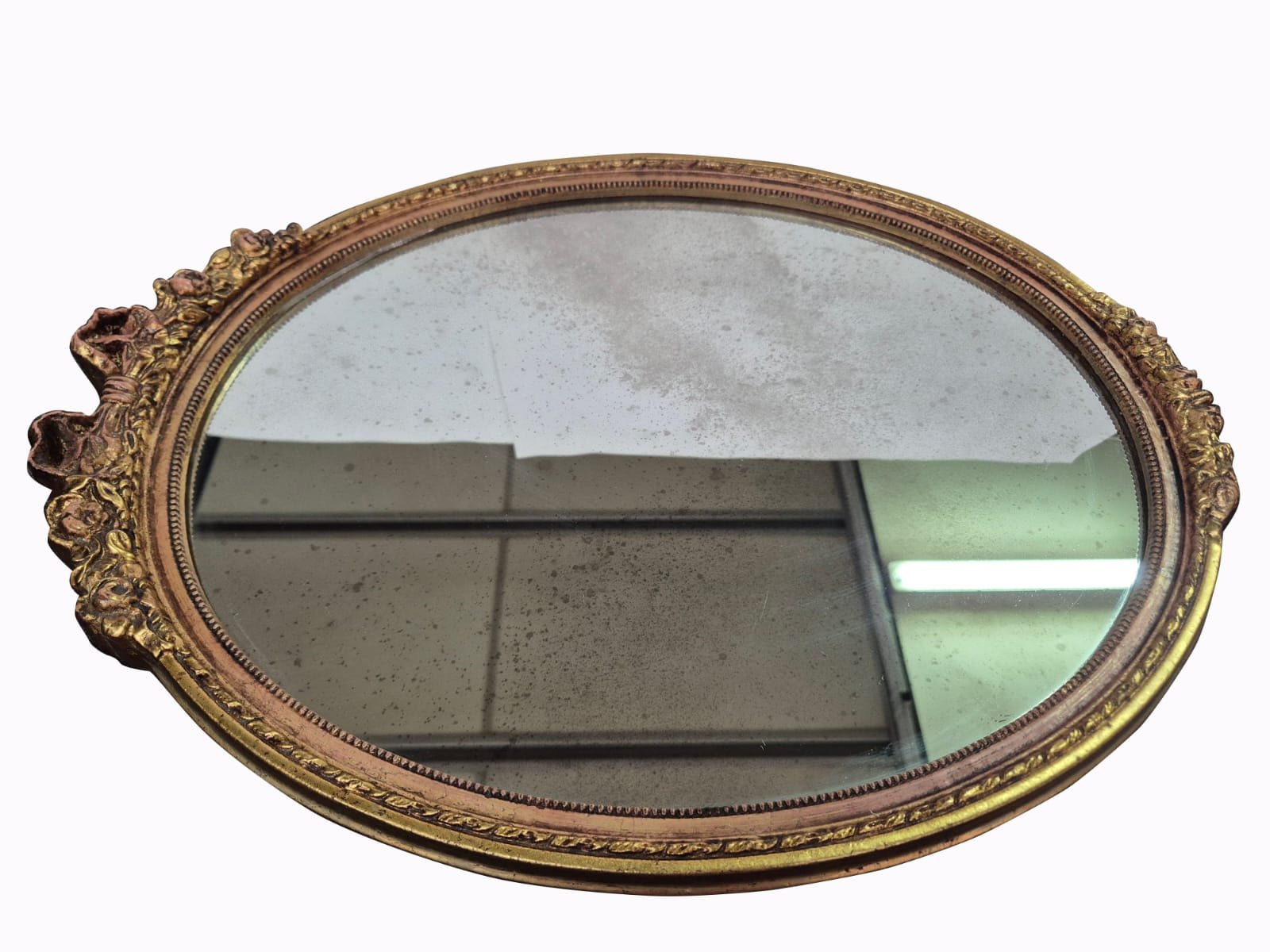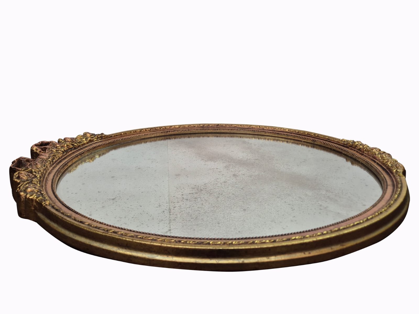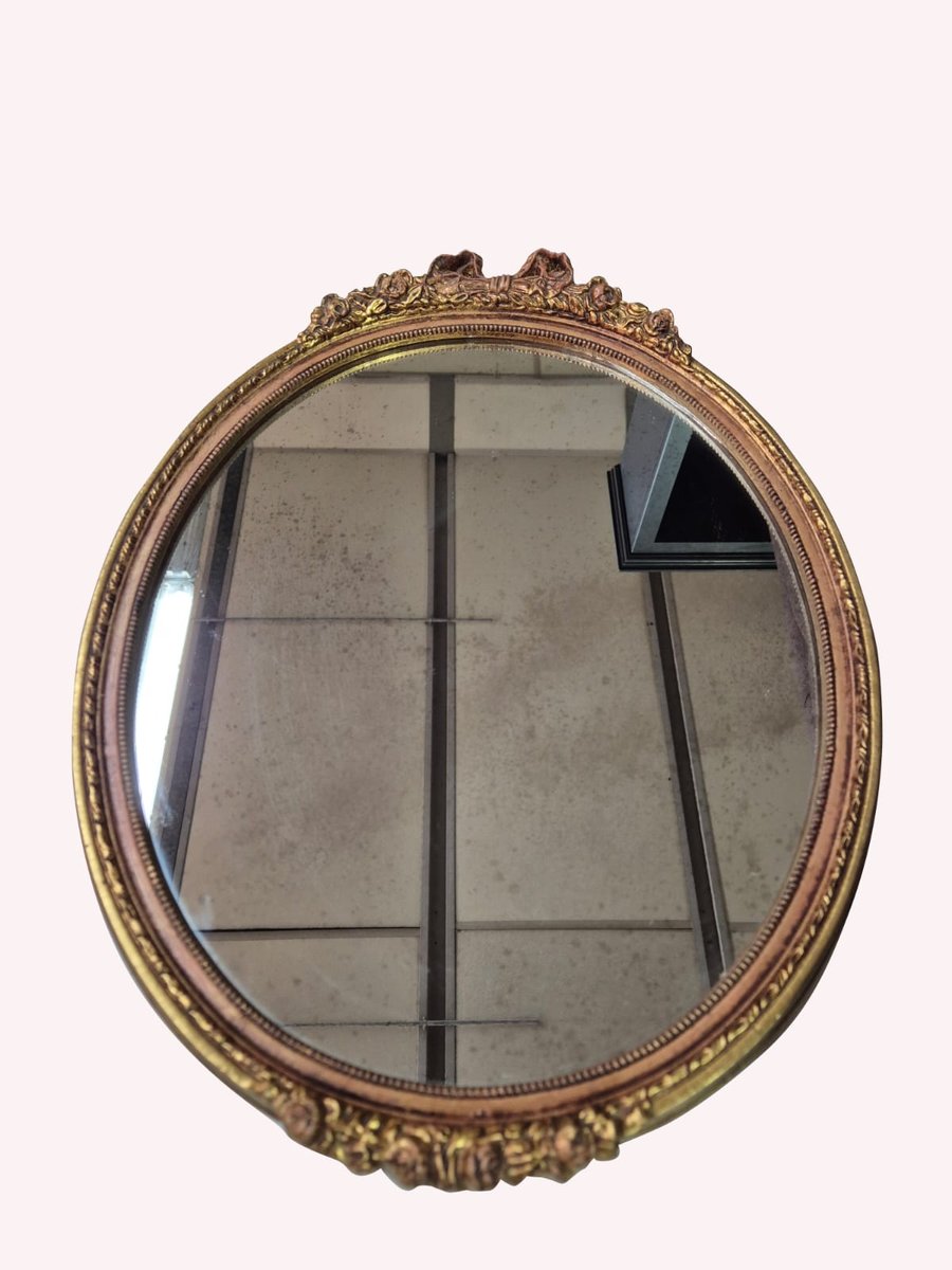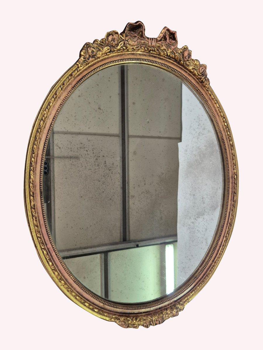 Handgeschnitzter und vergoldeter Ovaler Wandspiegel, frühes 19. Jh.