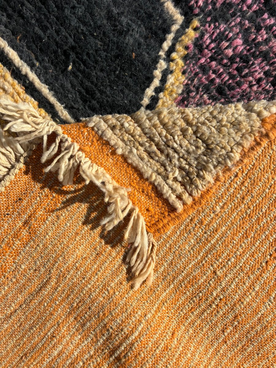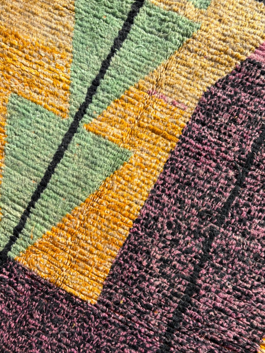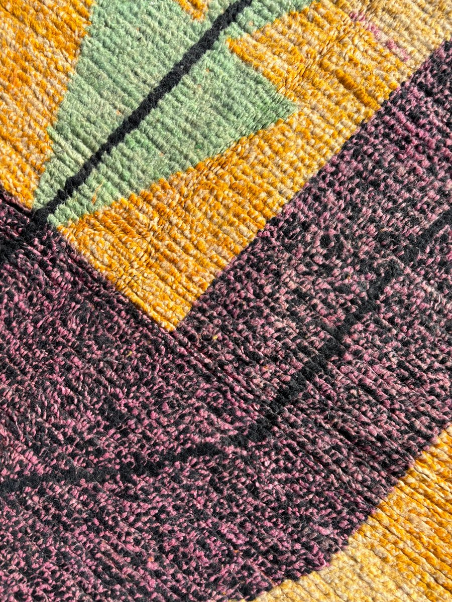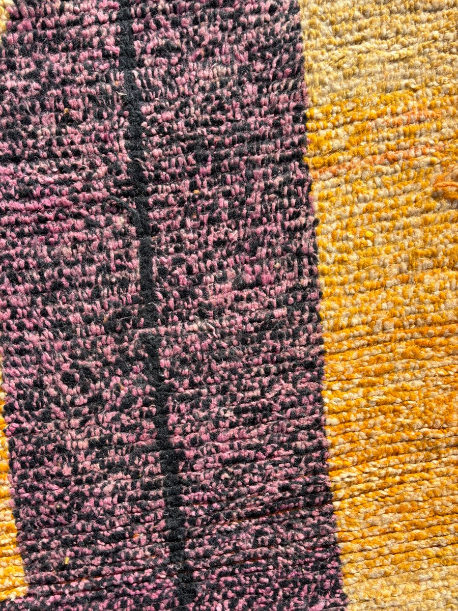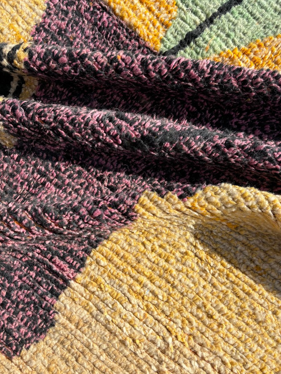 Dieser exquisite Boujad-Berberteppich im Vintage-Stil zeichnet sich durch eine atemberaubende rosa Farbpalette aus, die charakteristisch für die leuchtenden Farben der Boujad-Teppiche aus der marokkanischen Region des Mittleren Atlas ist. Der aus natürlicher Wolle handgewebte Teppich zeigt komplizierte geometrische Muster und symbolische Motive in sanften Rosatönen, akzentuiert mit erdigen Tönen und subtilen Farbtupfern. Sein einzigartiges Design und seine reiche Textur spiegeln das künstlerische Erbe der Berberstämme wider und machen ihn zu einer perfekten Wahl, um jedem Wohnraum Wärme und einen Hauch von böhmischer Eleganz zu verleihen. Dieses einzigartige Stück ist ideal für Schlafzimmer, Wohnzimmer oder kreative Räume und wertet jedes Interieur mit seinem Charme und seiner Authentizität mühelos auf. togo