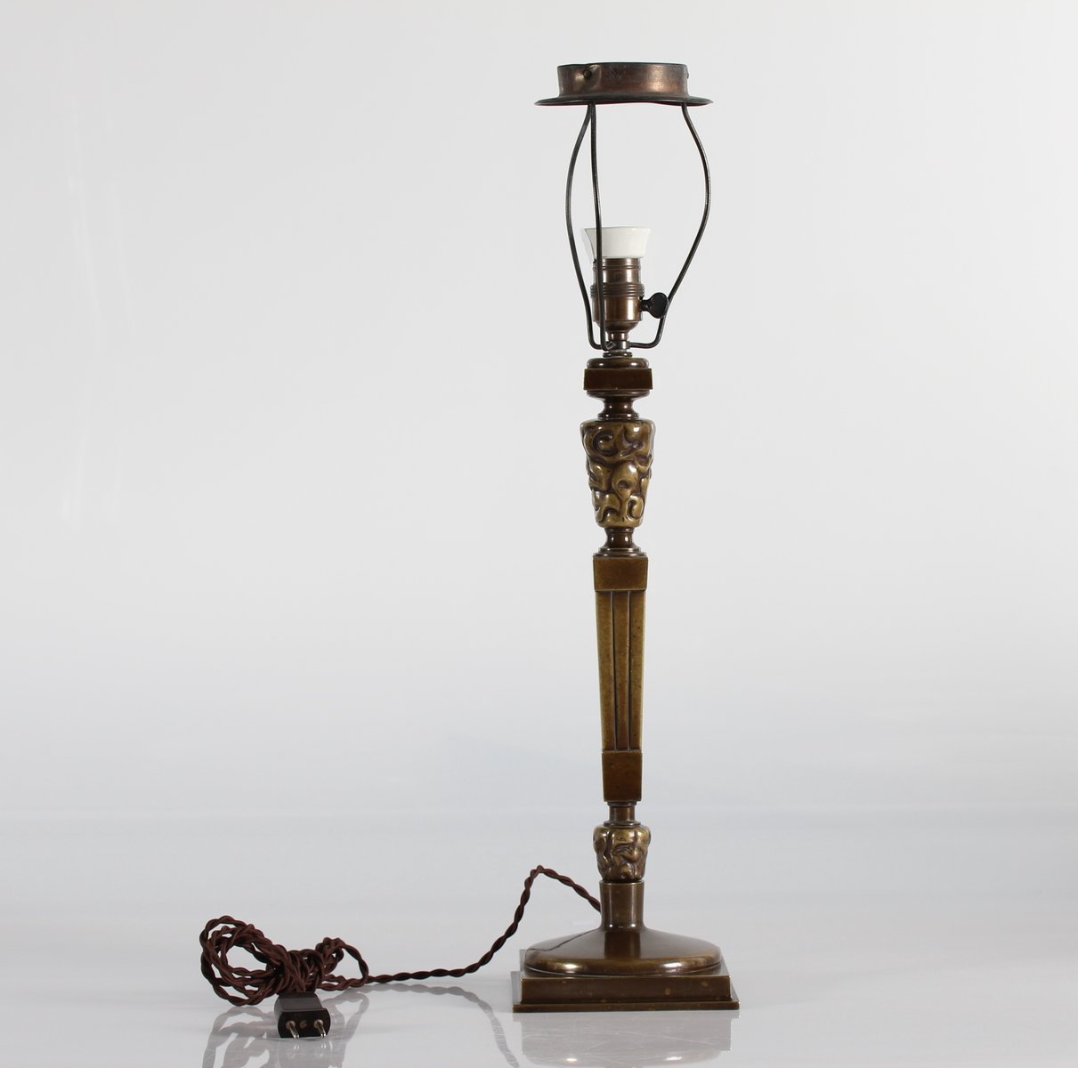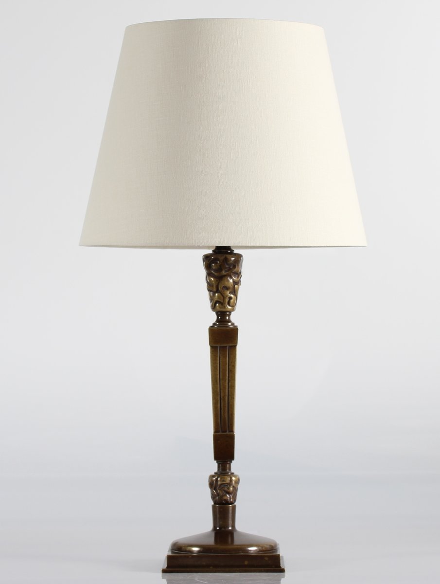 Hohe Jugendstil Tischlampe aus patinierter Bronze von Thorvald Bindesbøll, Dänemark, 1890er