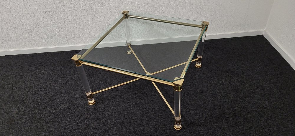 Hollywood Regency Beistell- oder Couchtisch aus Gold & Acrylglas, 1980er