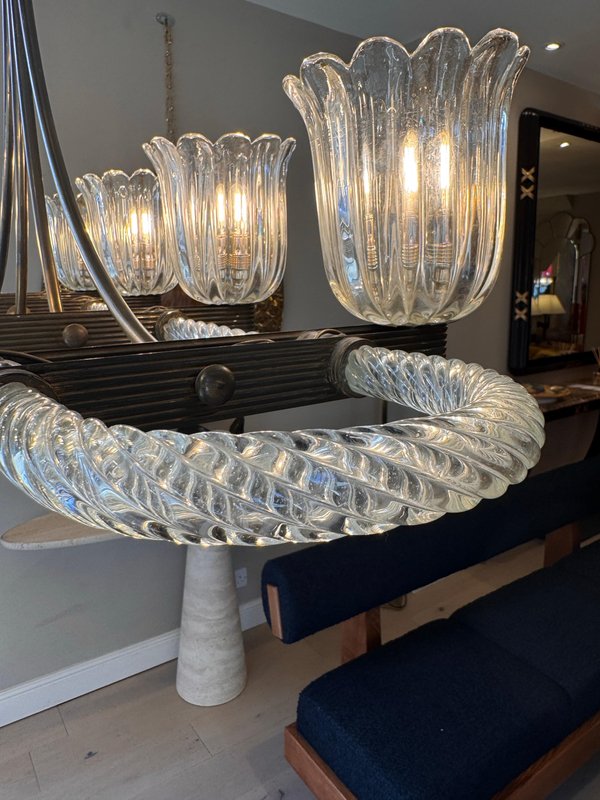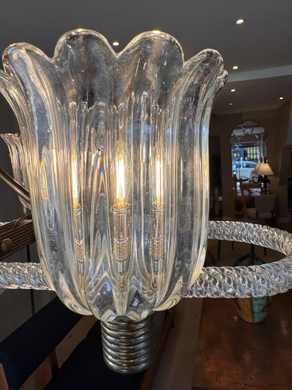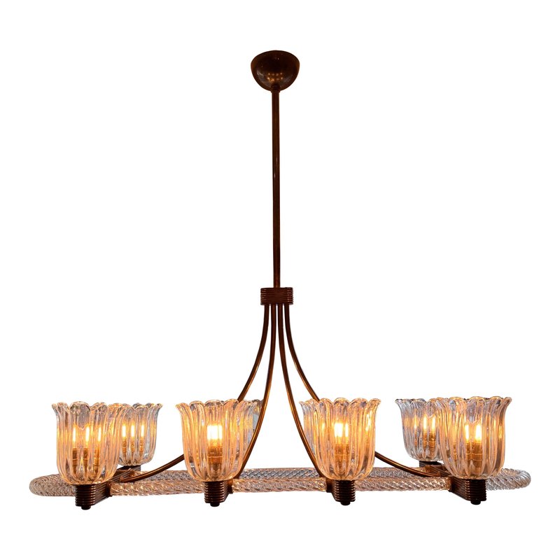 Horizontaler 8-armiger Kronleuchter mit Messingmontierung, Ercole Barovier zugeschrieben, 1930er