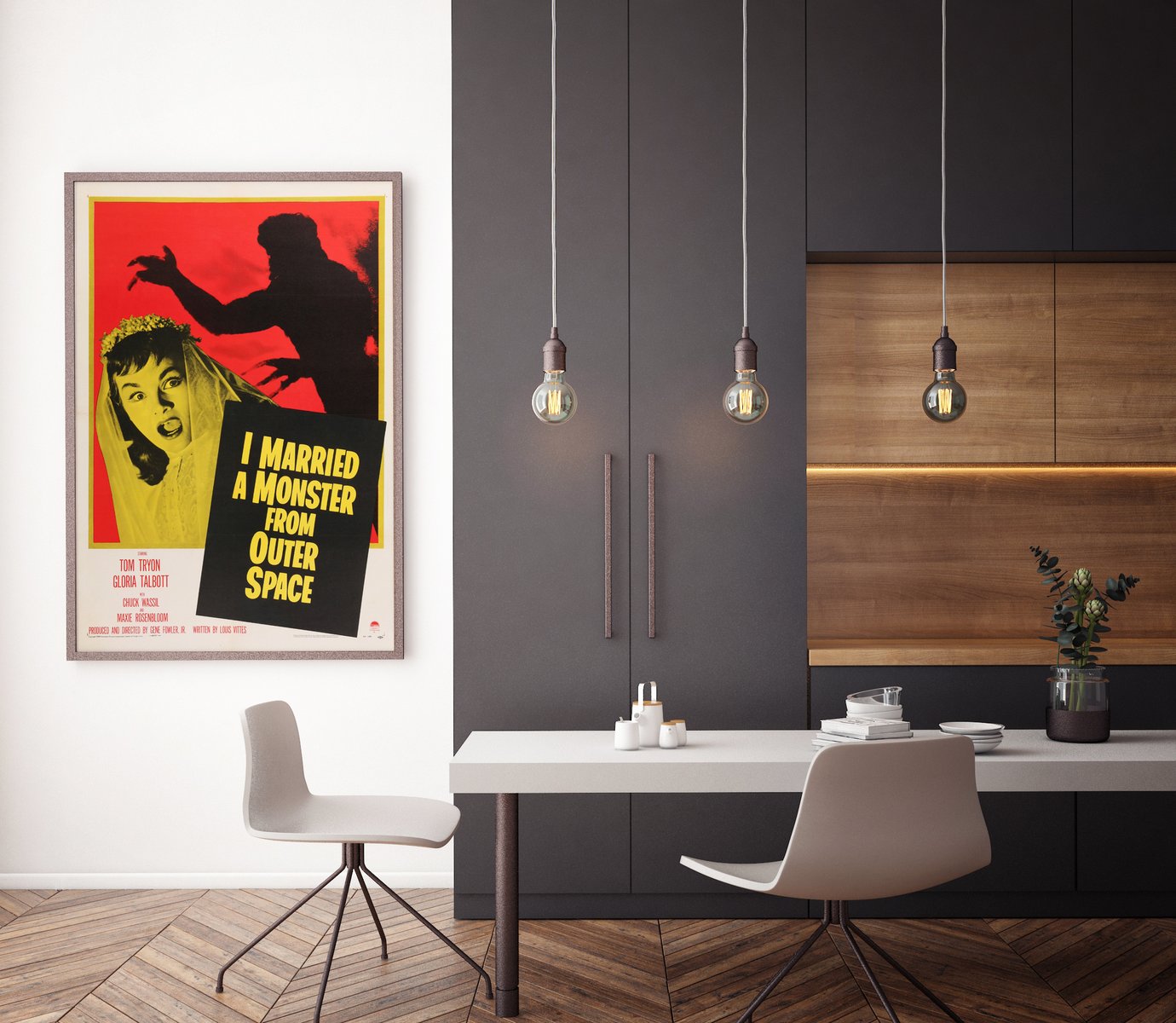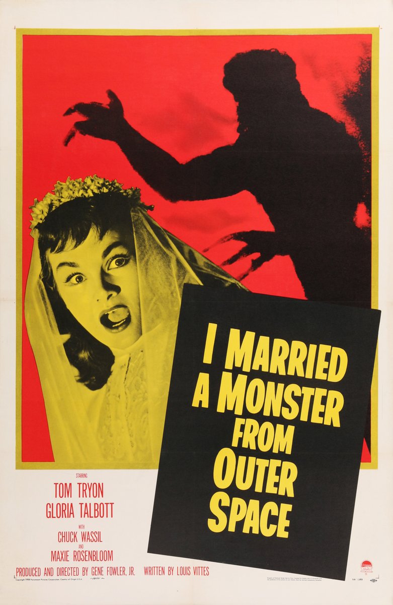 With a kitschy schlock-horror title and eye-catchingly vibrant artwork featuring a young bride dramatically recoiling in horror at the alien shadow lurking behind her, B movie sci-fi doesn't get much better than this! Released in black and white by Paramount as a double feature with 'The Blob,' 'I Married A Monster From Outer Space' became a fifties drive-in favourite. Starring Gloria Talbot and Tom Tyron, the film followed a new bride's discovery that her husband has been replaced by an alien in humanoid form, along with most of the men in her small town. Despite the sensationalist marketing, the movie was well received by critics as an "intelligent, atmospheric and subtly made sci-fi thriller."
