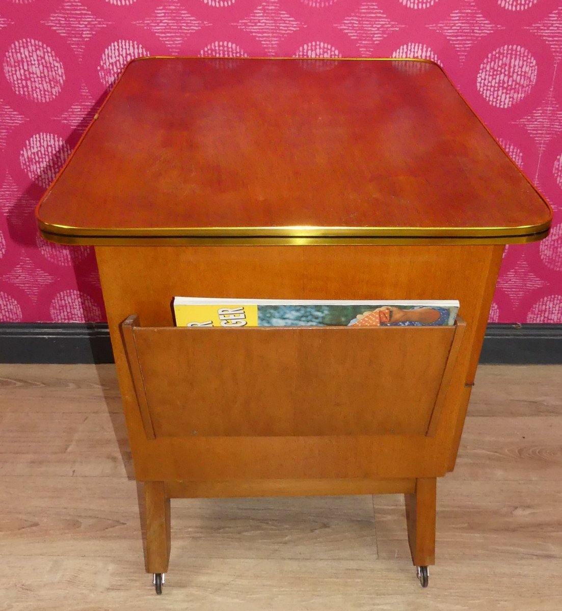 Compartments for magazines or similar items are attached to the sides...a practical detail that complements the special shape of the furniture.