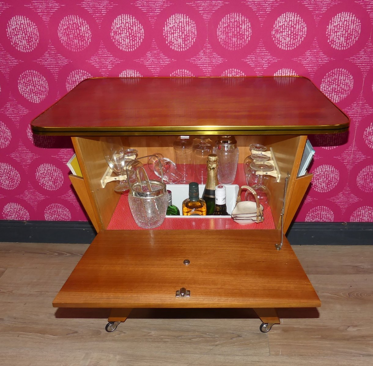 It stands on casters—which is practical, but they are a little small for the weight of the furniture. The advantage is that it stands stable without rolling away, but if you want to use the bar as a mobile unit, you should replace them with larger ones!